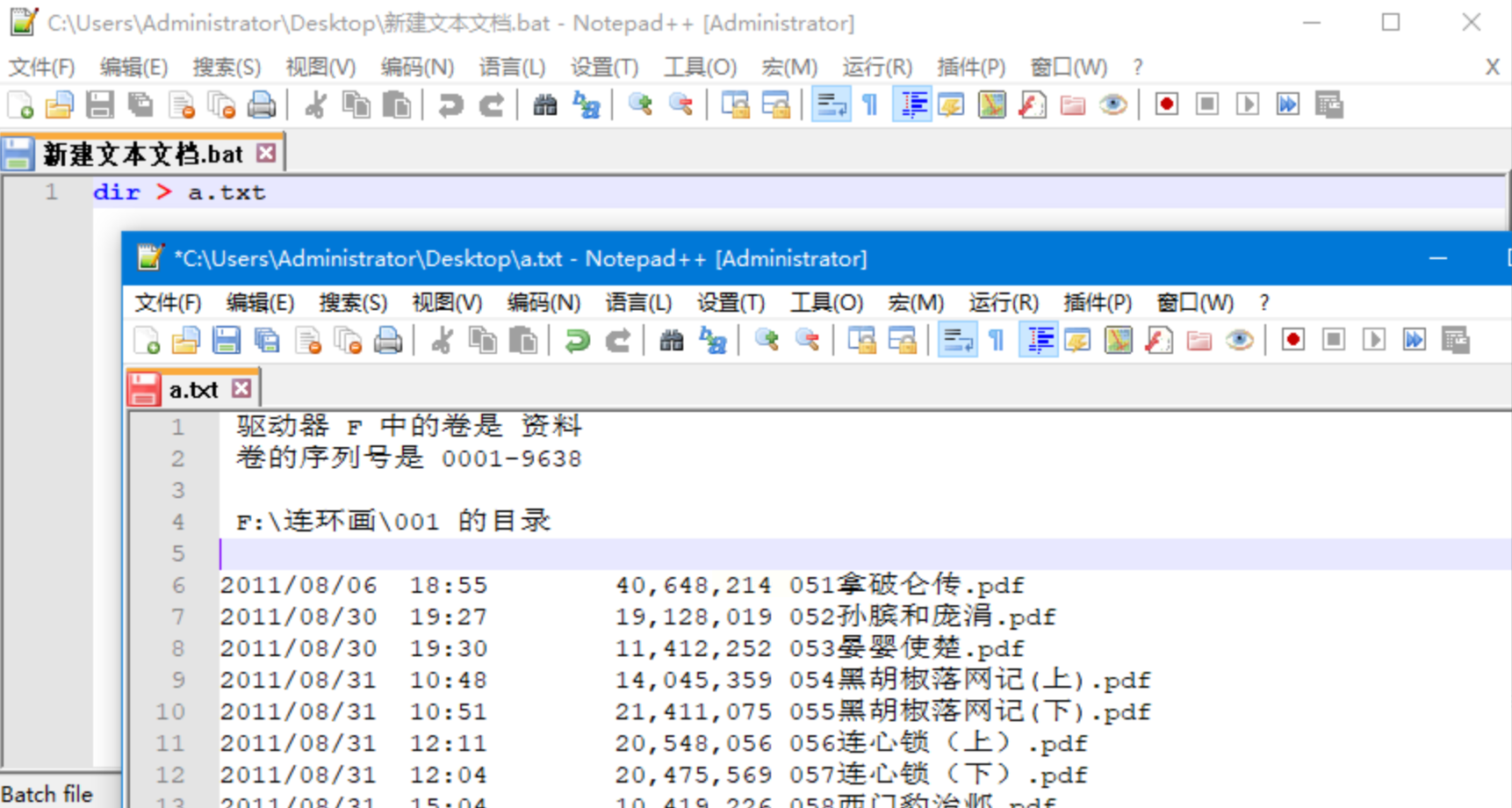 4. 双击运行:文件变成一个黑窗口,闪一下就消失了,然后你会看到文件夹里多了个“文件名列表.txt”,打开就是所有文件路径+名称!