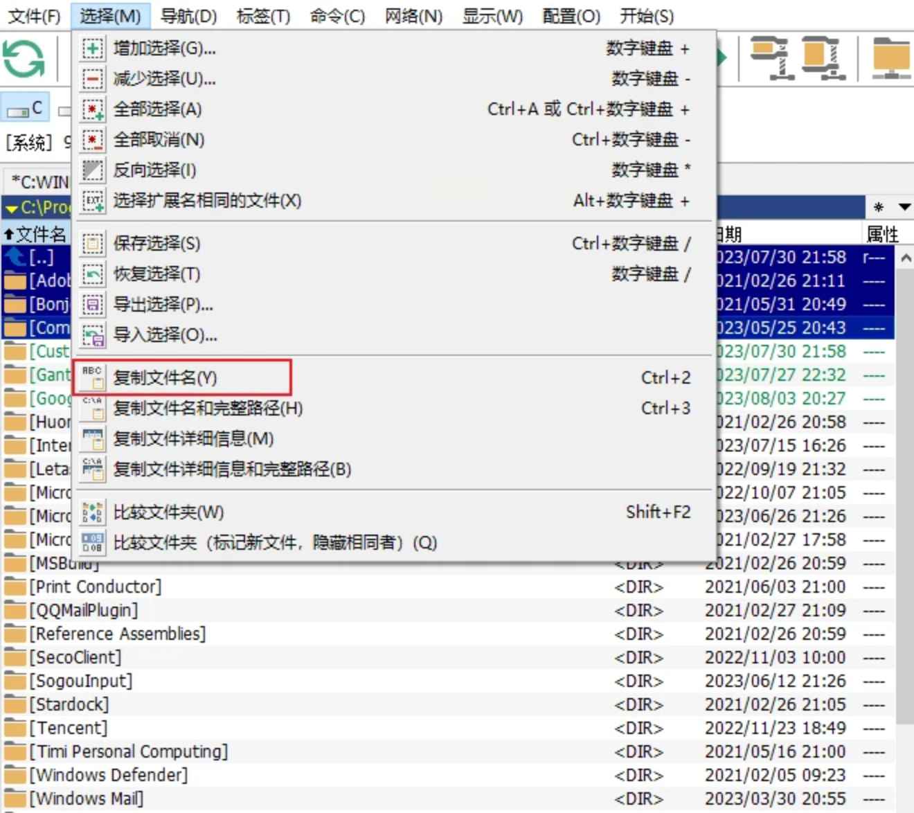 点击顶部菜单栏的“菜单”→“文件”→“复制到剪贴板”→“复制文件名”(具体路径可能因版本不同略有差异,比如飞扬时空版本是“选择→复制文件名”)。