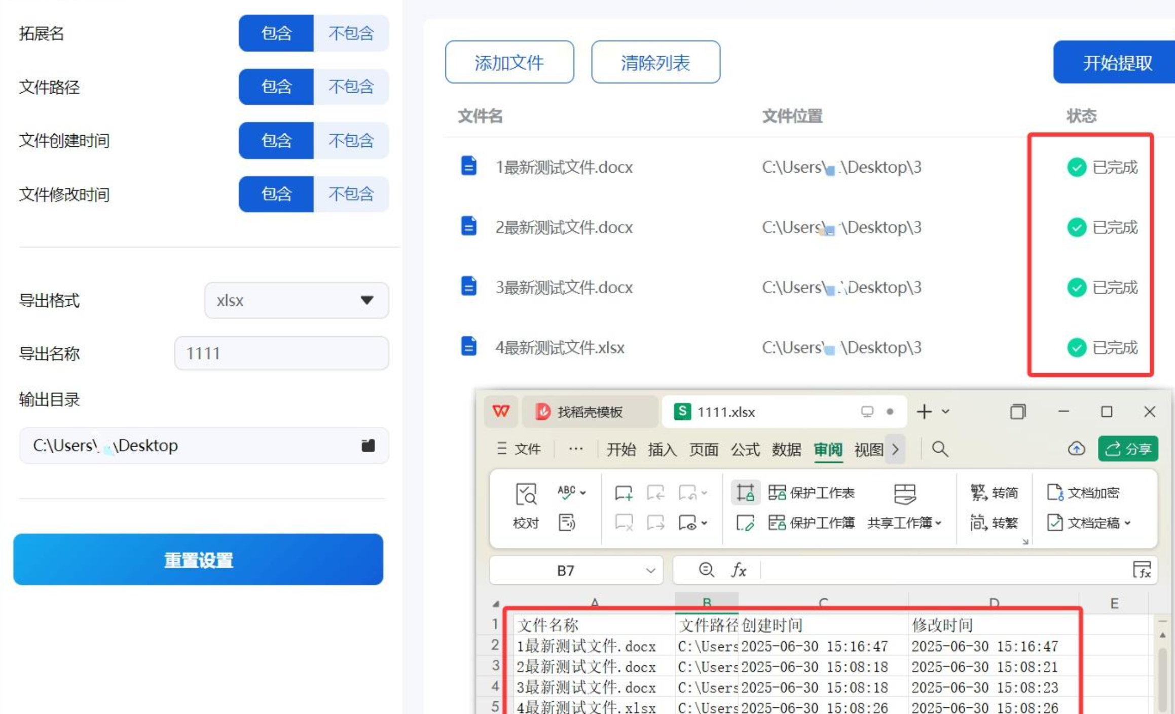 点击右上角的“开始提取”,软件会在后台快速处理。完成后,打开导出的Excel文件,你会发现表格里不仅有文件名和大小,还包含了文件的修改时间(比如“2023-08-15 14:30:00”),这些信息对判断文件是否为最新版本很有帮助。