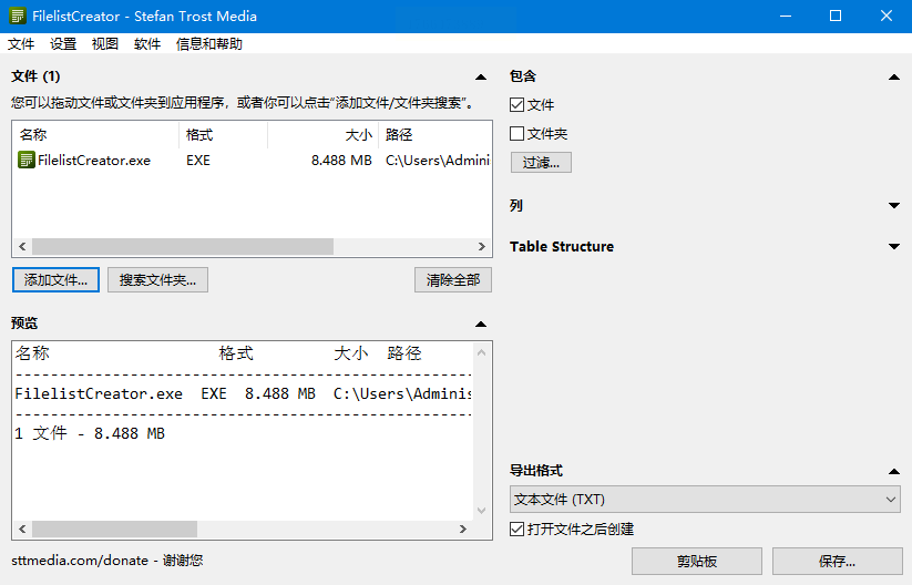 这是一个在国外用户中比较流行的免费、开源小工具。它的名字直白地说明了功能:创建文件列表。它的界面可能不那么时尚,但非常轻量,功能直接。你只需要指定一个文件夹,它就能快速扫描并列出其中所有文件的详细信息,并支持导出为 Excel、HTML 等多种格式。对于喜欢简洁、纯粹工具的用户来说,它很合适。