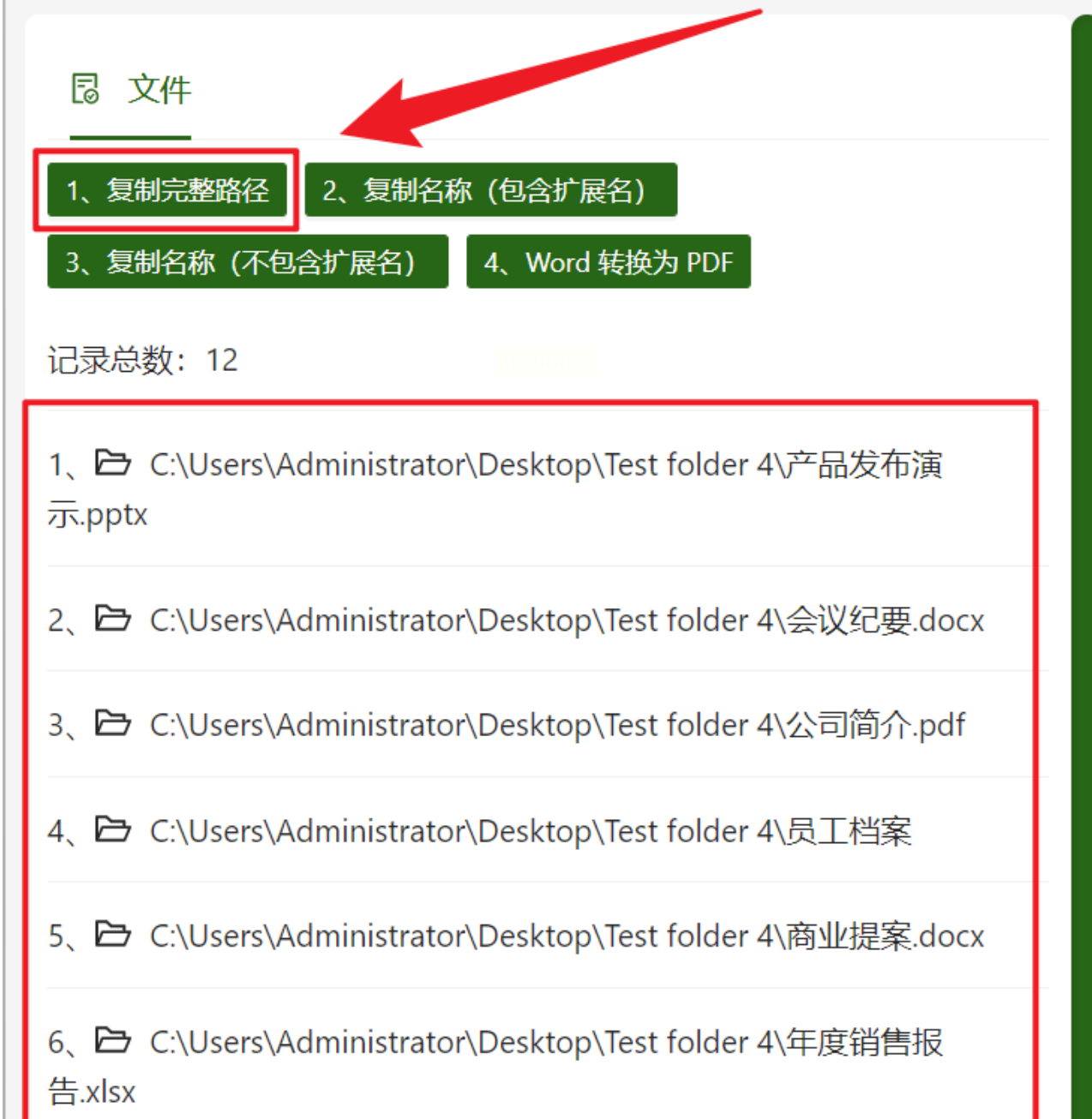 4. 复制路径:在弹出的窗口中点击"复制完整路径",此时所有文件的路径和名称已存入剪贴板。