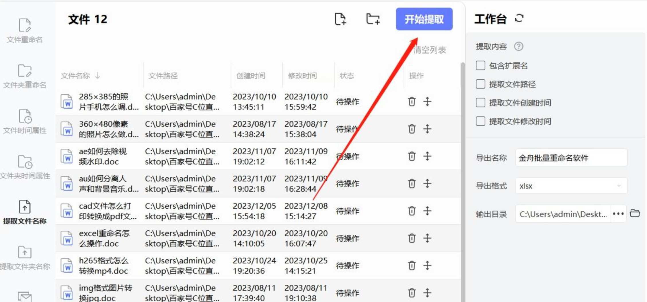 4. 执行提取:点击"开始提取",软件会在2-3秒内完成所有文件的处理。