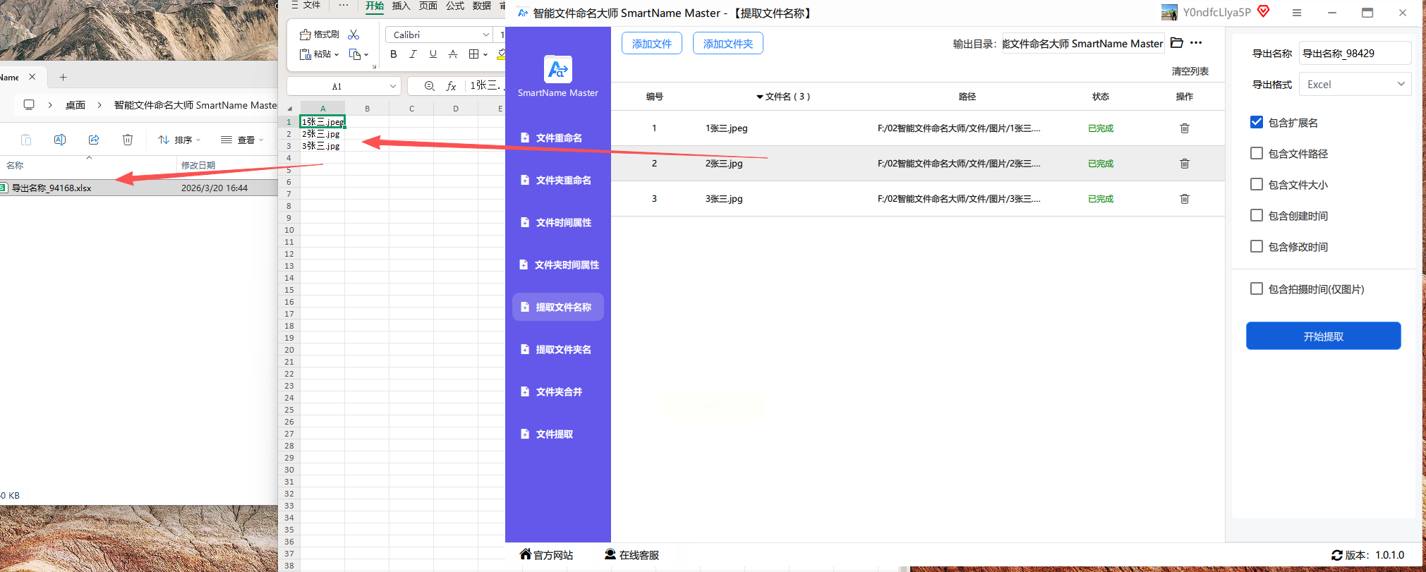 适合经常处理重复命名照片的,比如从相机导出来的照片,名字都一样的,用它一键导出,轻松完成提取照片名字到表格,还能避免重复。