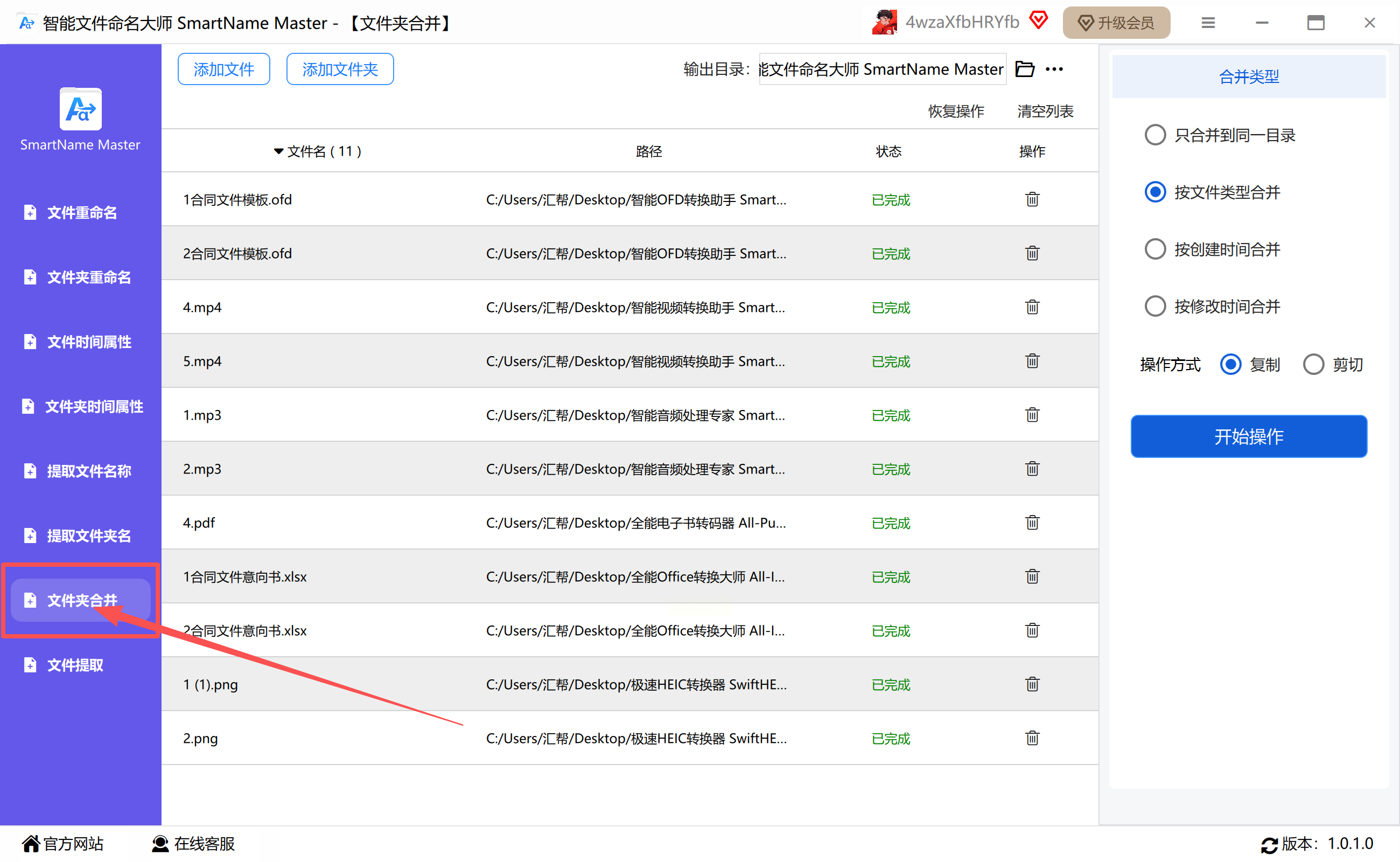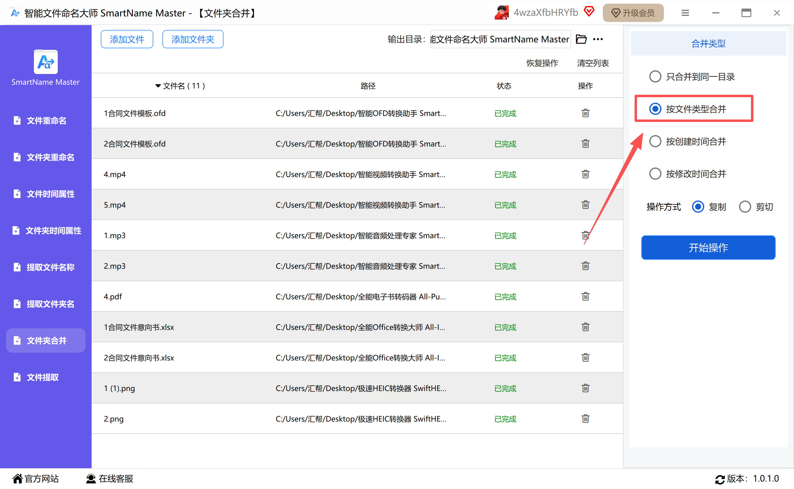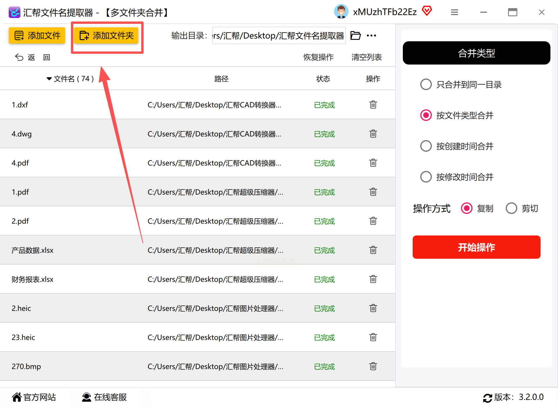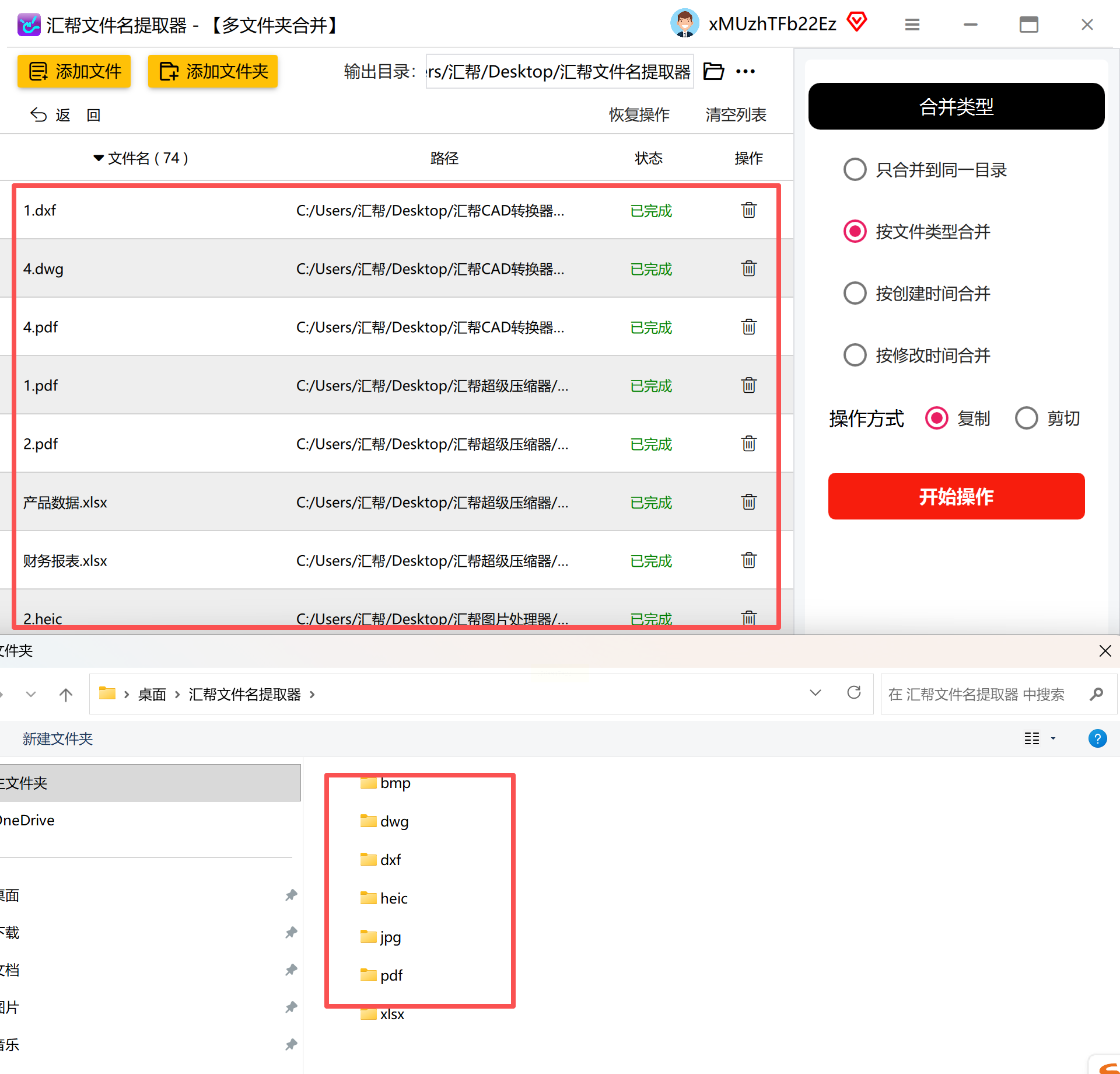 这款软件专注于文件夹和文件的合并管理,其“按类型合并”的功能特别适合用来分类提取文件,过程一目了然。