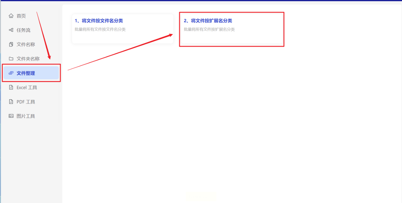 1. 打开软件后,直接点左侧菜单的【文件整理】,再选【将文件按扩展名分类】