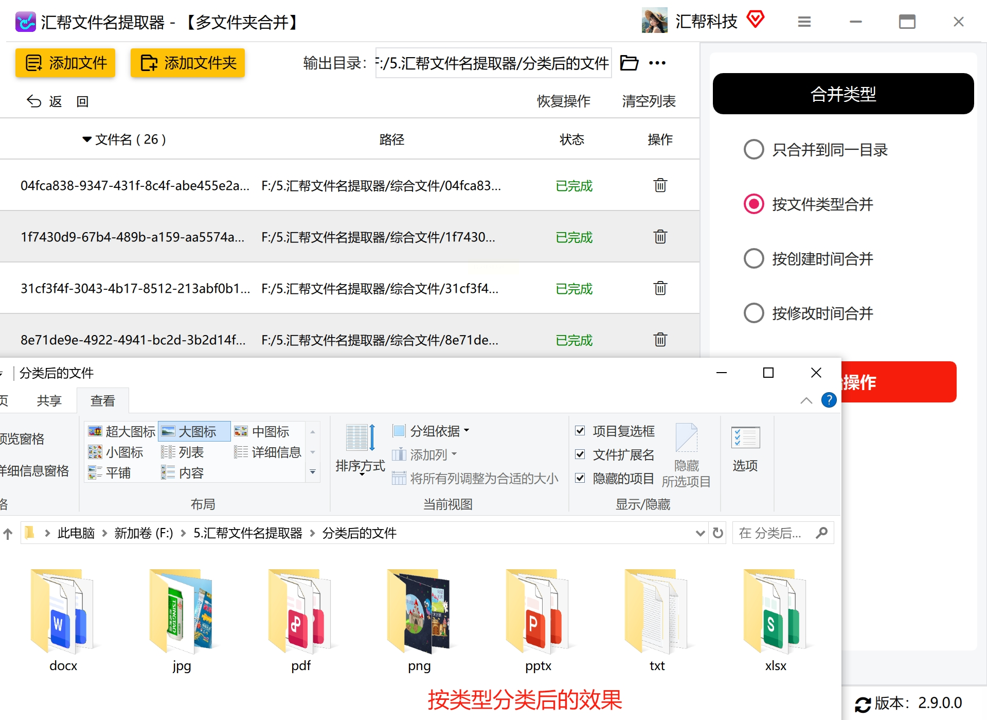 一、汇帮文件名提取器批量给大量文件分类,支持多个和嵌套文件夹合并
