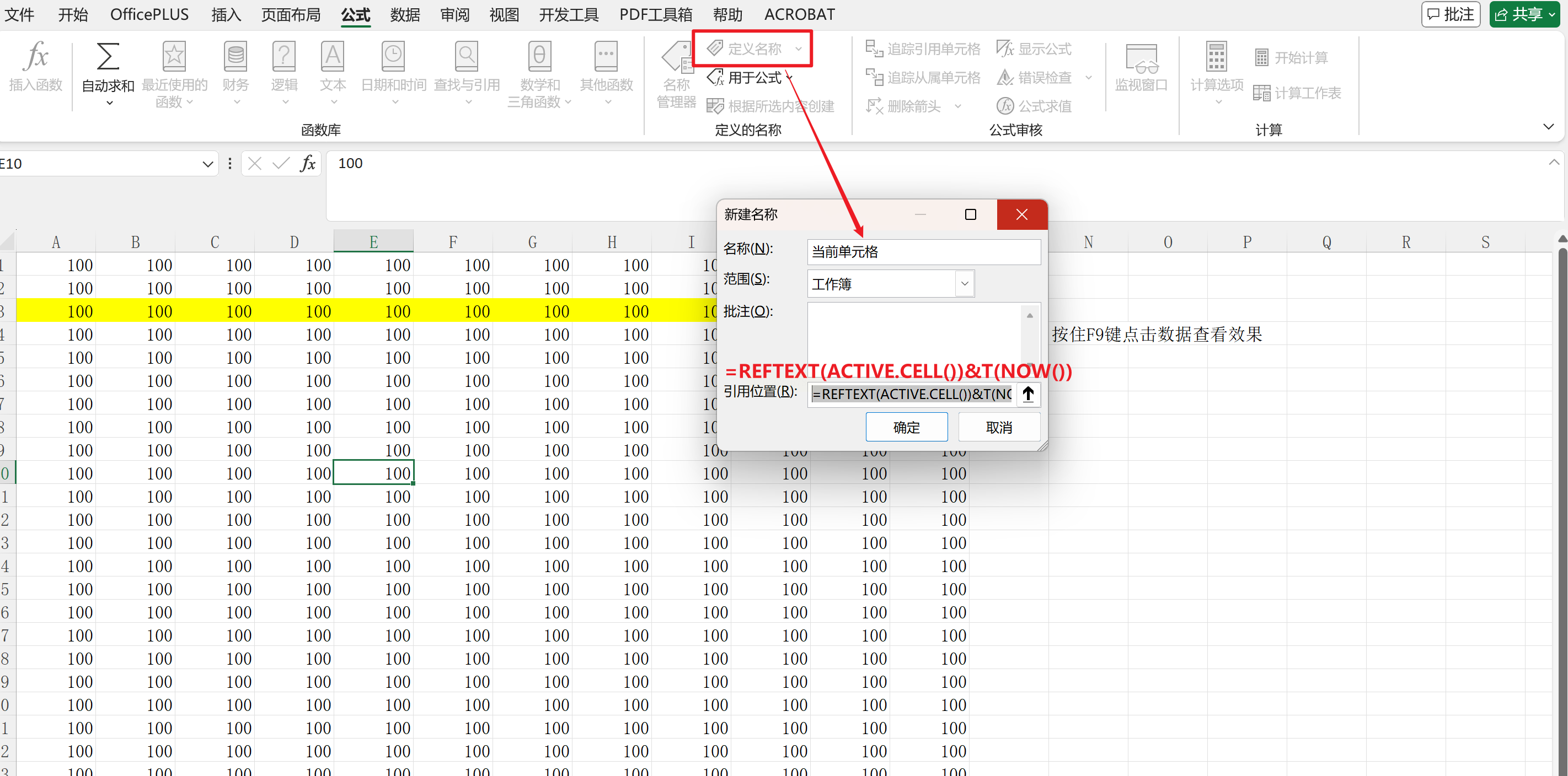 步骤三:选择需要显示文件名的单元格区域,点击公式菜单,选择定义名称,在名称框中输入FileList,在引用位置框中输入公式=FILES(Sheet1!$A$1),假设A1单元格是文件夹路径。