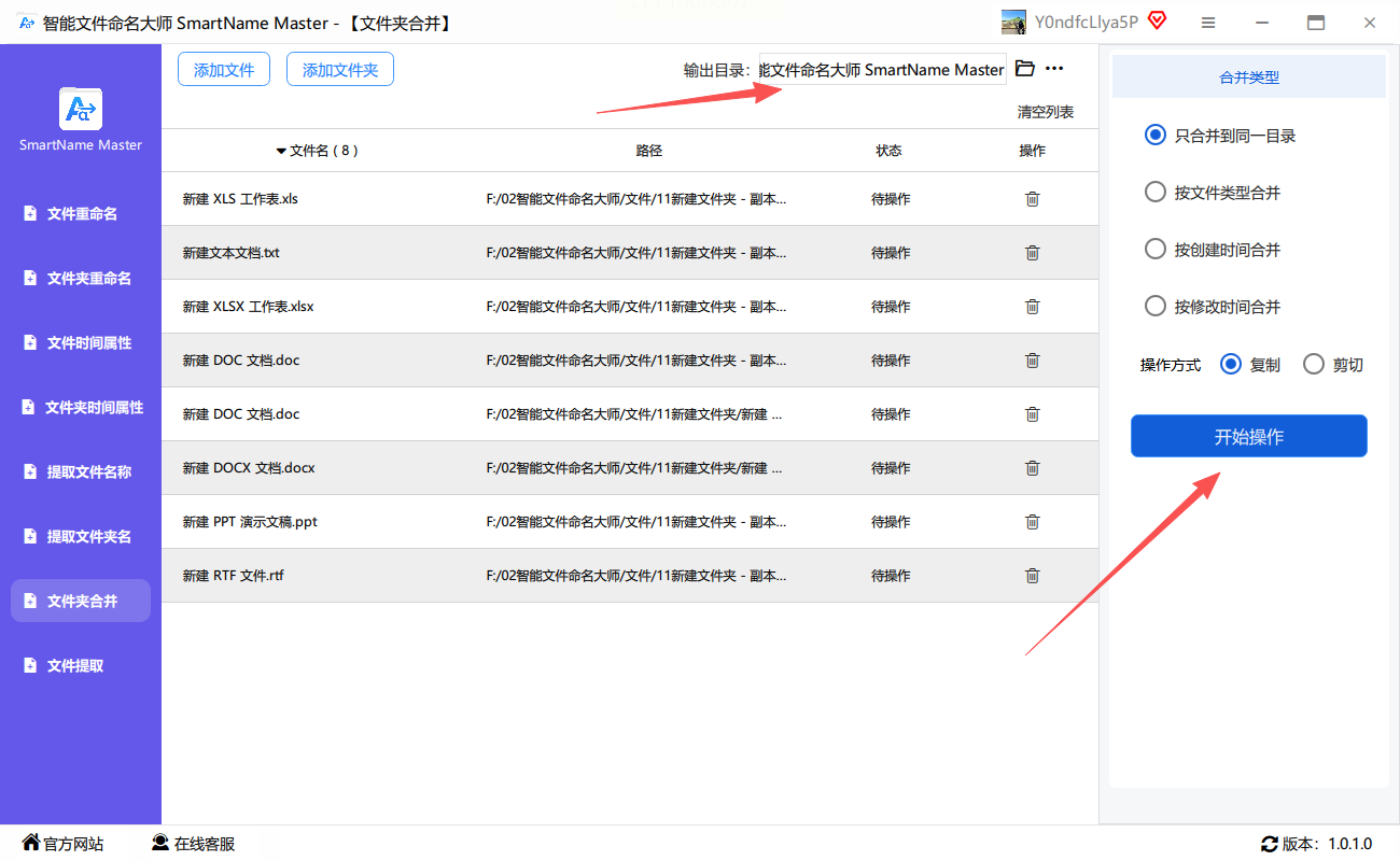 - 剪切模式:直接删除原文件夹,仅保留合并后的文件,适合已确认文件无遗漏的情况。