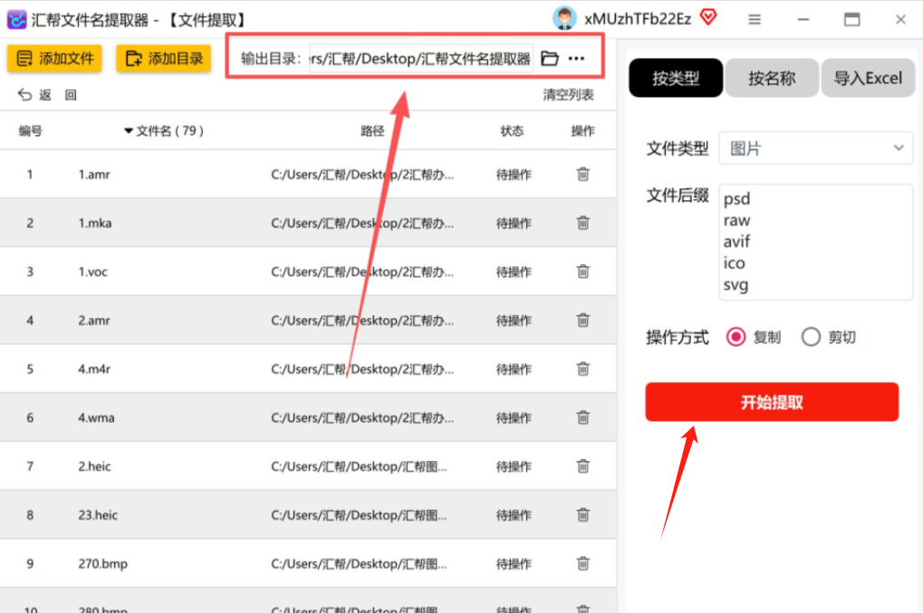 安装完成后打开汇帮文件名提取器,在主界面中选择“文件名提取”功能。该功能不仅能提取图片,还支持文档、视频等其他文件类型,但我们这里专注于图片整理。