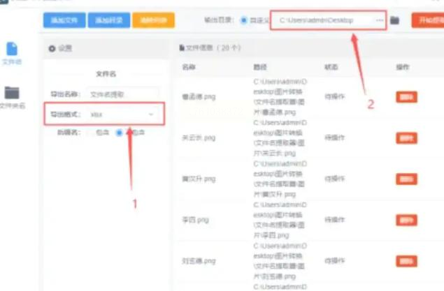 - 点「输出目录」右边的文件夹图标,选个容易找到的位置,比如桌面建个「图片列表」文件夹;