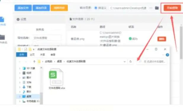 点右上角「开始提取」红色按钮,等进度条走完,软件会自动弹出Excel文件。