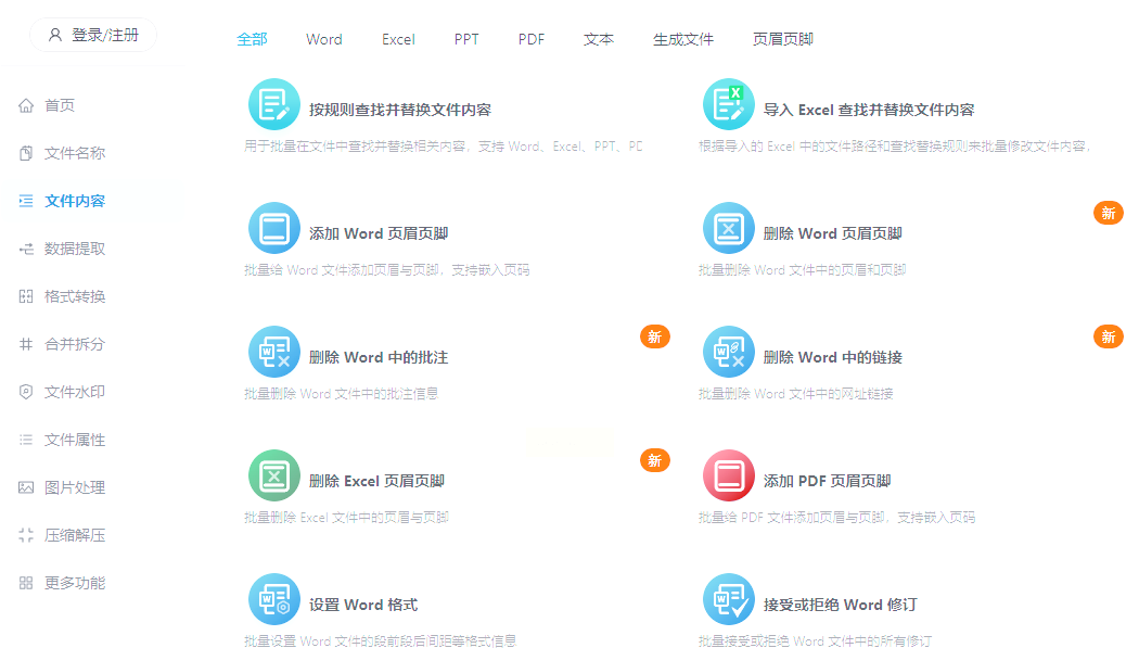 - 包含文件批量处理、内容提取、格式转换等多种功能