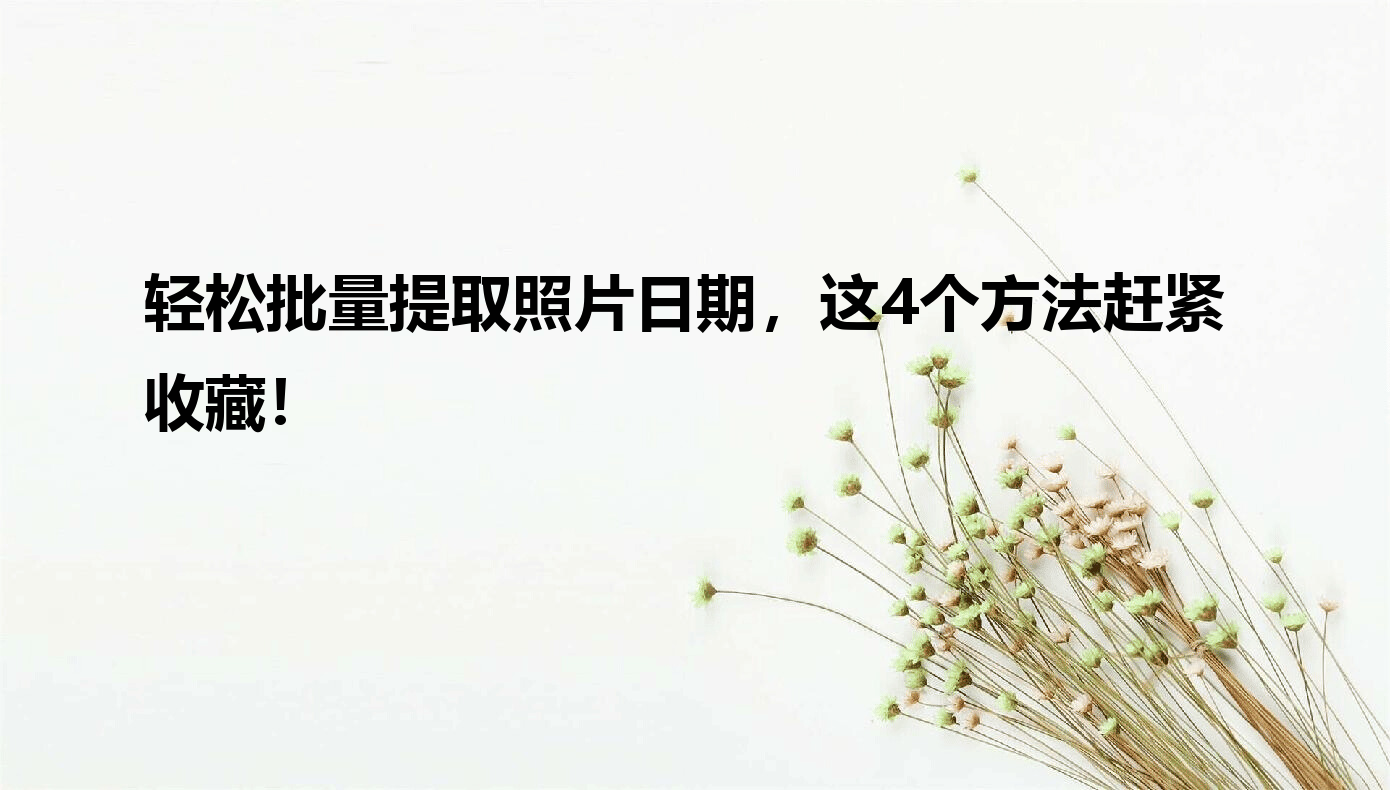 因此,批量提取照片拍摄日期不仅能帮我们快速排序和分类照片,还能节省大量整理时间,让照片真正成为回忆的载体而非负担。接下来,我将详细介绍4种实用方法,从手机端到电脑端,从简单工具到专业软件,满足不同场景的需求。