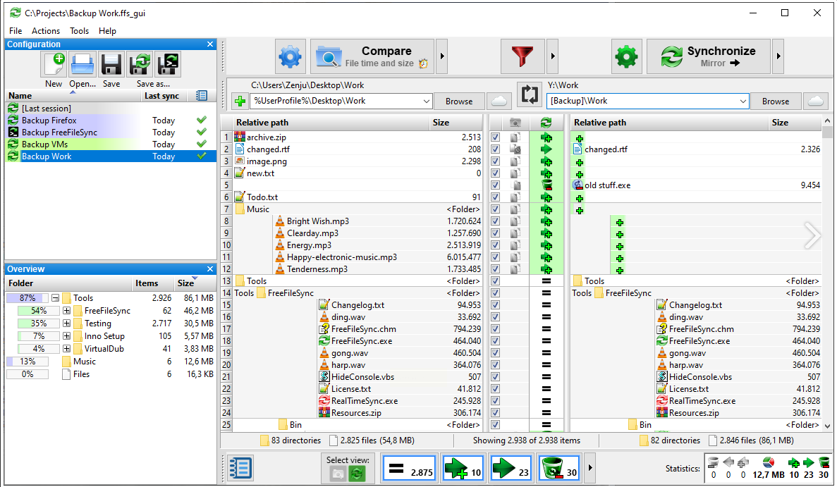 如果你需要的不是一次性合并,而是定期将几个文件夹的新内容汇总起来,那么这款免费开源的同步工具就特别合适。它可以比较两个文件夹的差异,然后只合并新增或更新的文件(也就是增量合并),避免重复操作,用来定期整理和备份文件非常高效。
