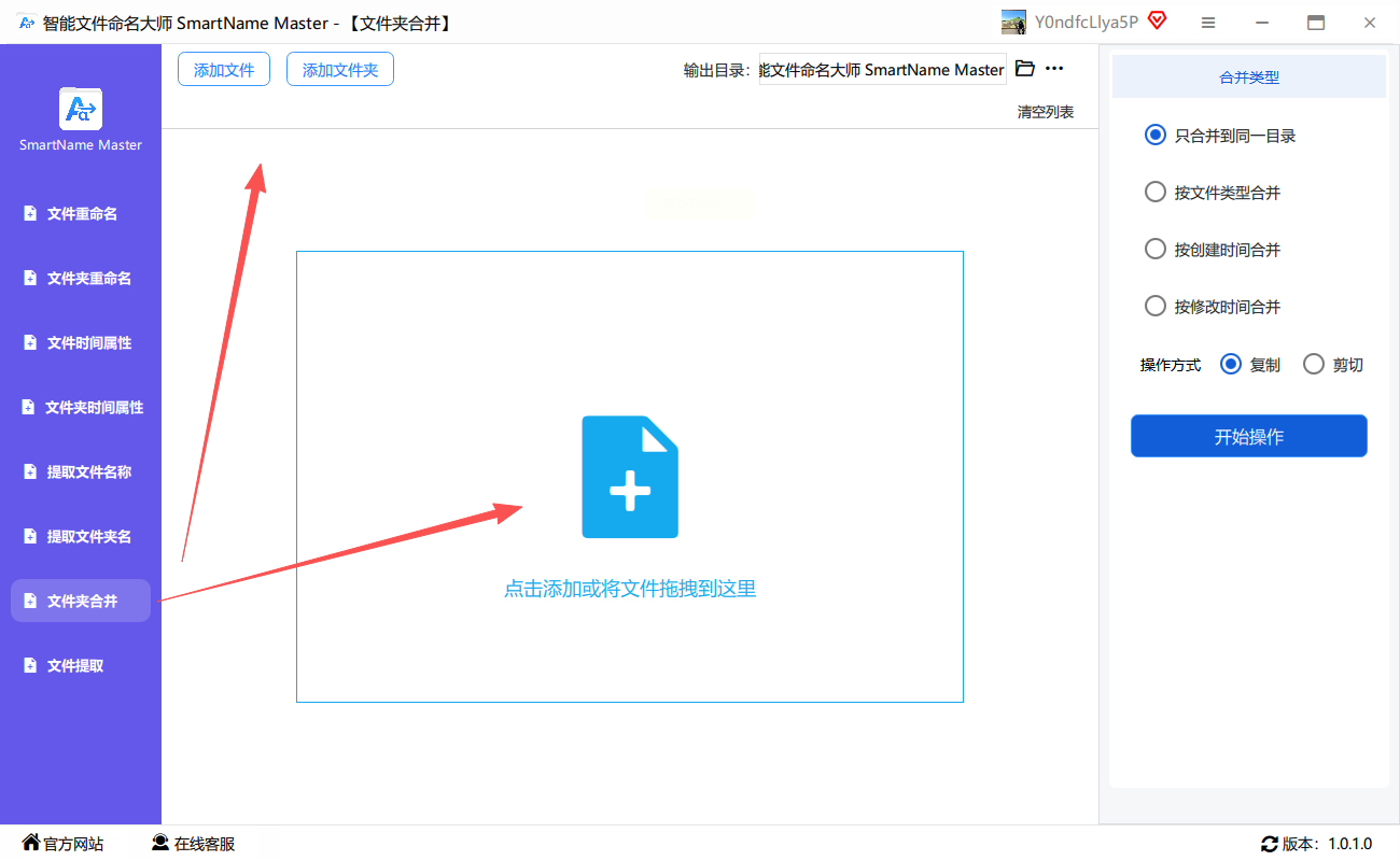 2. 左边点“上传文件夹”,把要合并的文件夹一个个拖进去,右边选合并类型,建议选“合并到同一目录”;