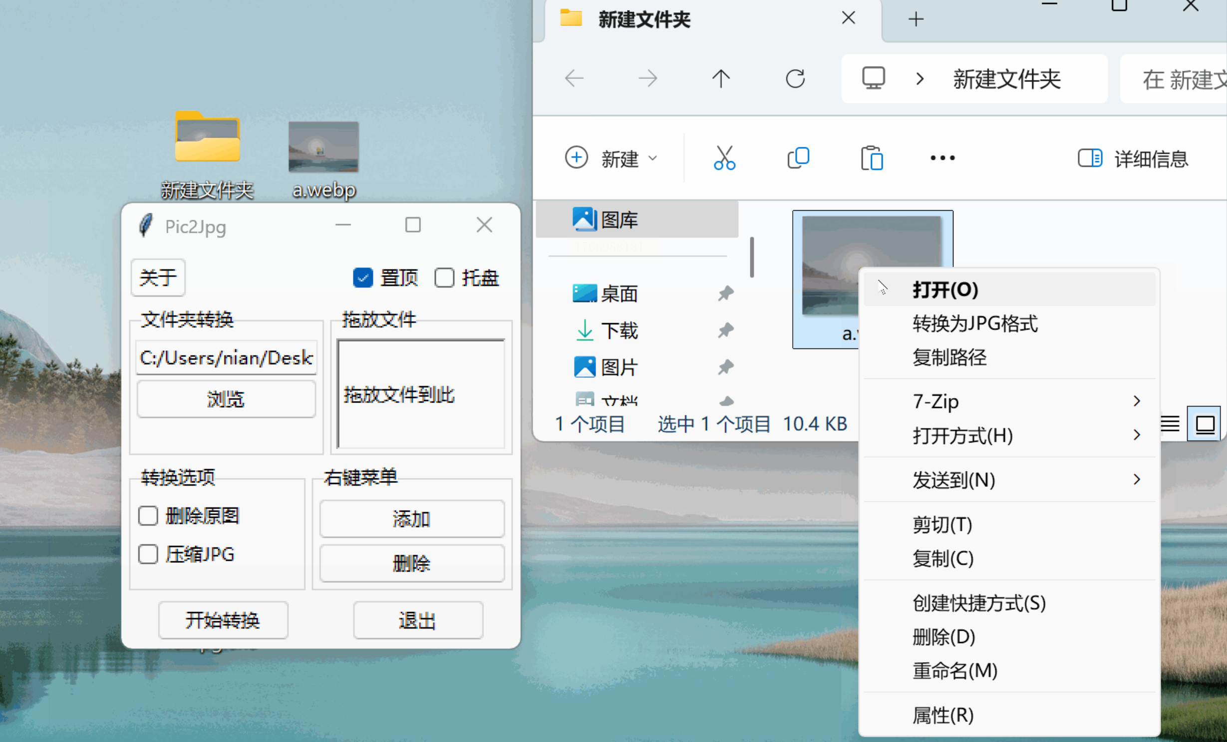 当您的任务不仅仅是“提取”,还可能涉及“统一格式”时,像Pic2Jpg这样的格式转换工具就显示出了其独特价值。它主要擅长将多种非JPG格式图片转换为JPG,同时其便捷的文件添加方式,也能间接实现从文件夹收集图片的功能。