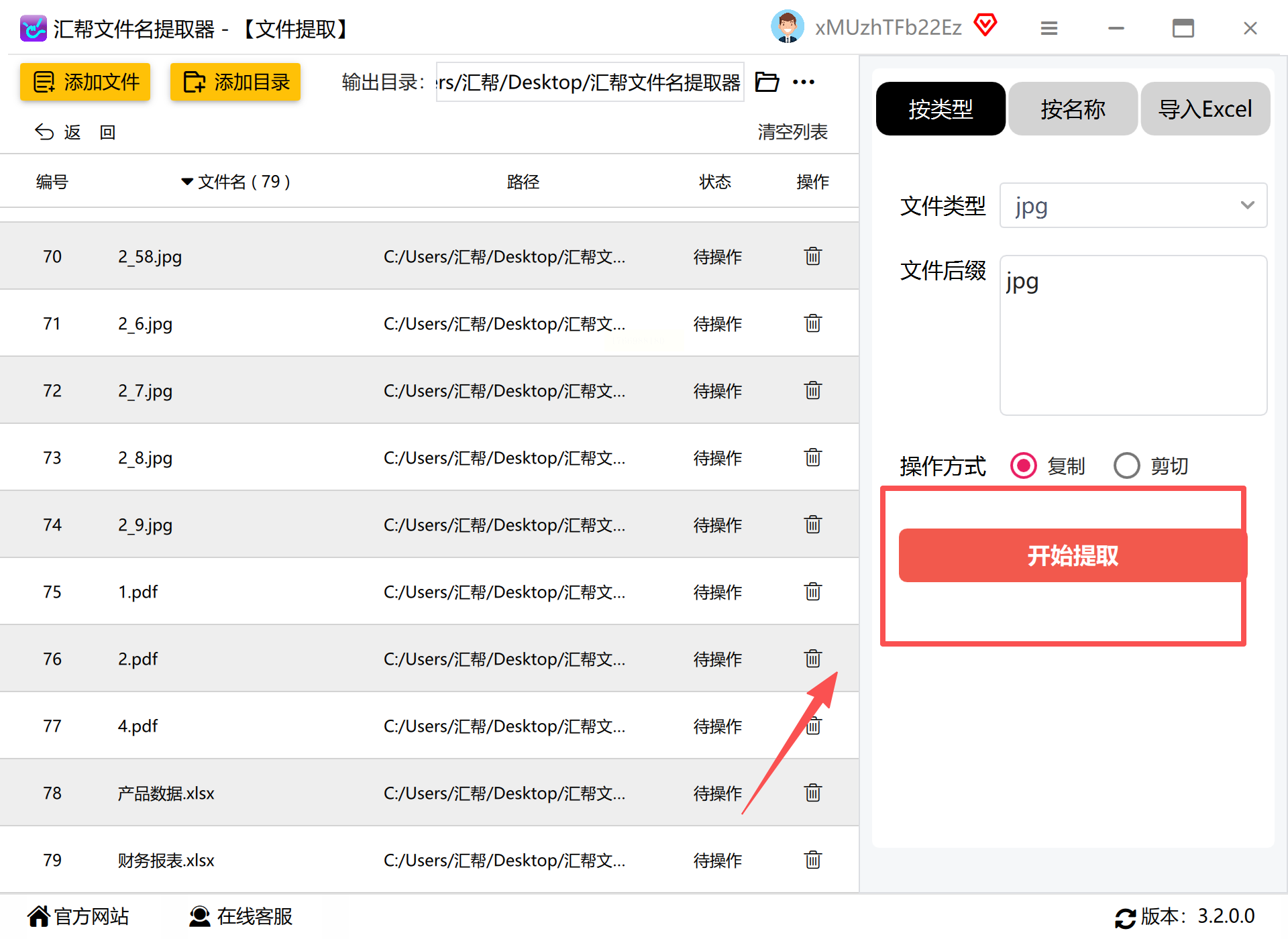 确认源目录、文件类型和输出路径无误后,点击界面中央醒目的“开始提取”或“立即提取”按钮。软件将开始遍历所有子文件夹,其提取速度通常非常快,处理过程会有进度条或文件计数提示。