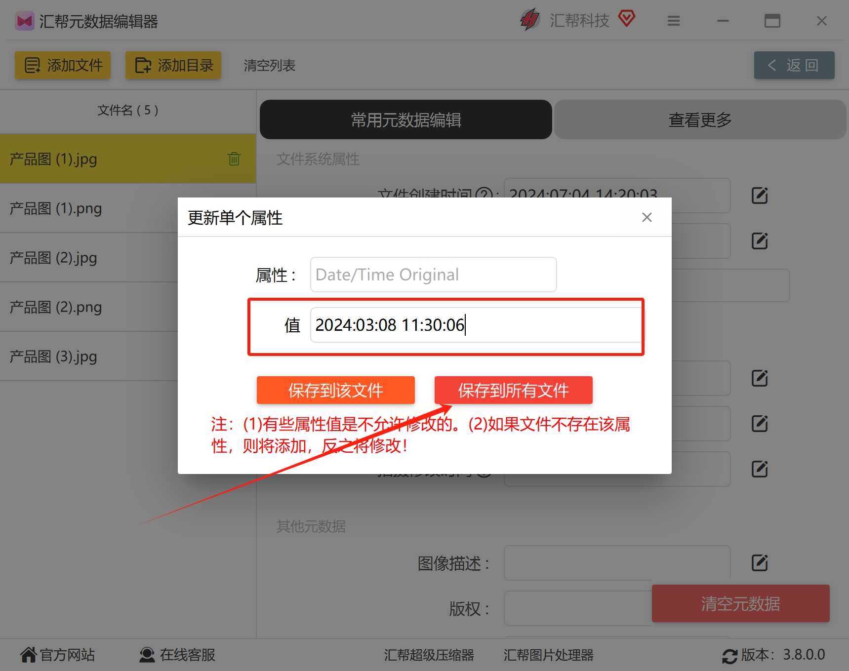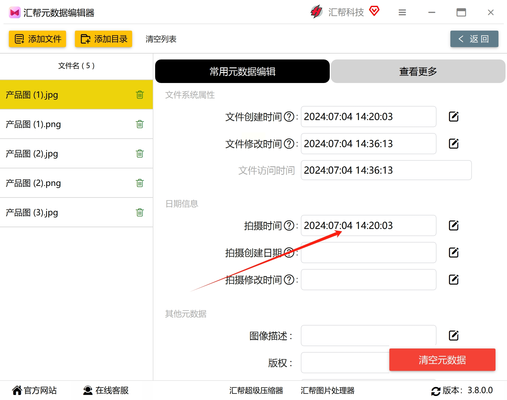 - 重要提示:注意区分“拍摄时间”“修改时间”“创建时间”,修改时需确保修改的是“拍摄时间”(即EXIF中的Original Date)。