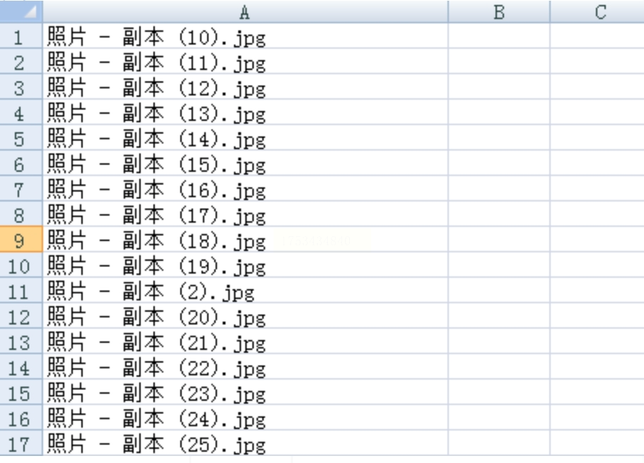 4. 双击打开Excel,所有图片名整整齐齐排排坐,强迫症患者表示极度舒适~
