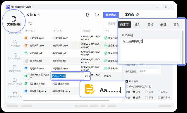 步骤一:启动金舟批量重命名软件,在功能导航栏中选择“文件夹名提取”模块。