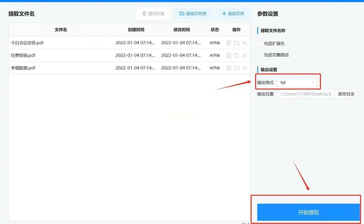 点右下角「开始提取」,软件会自动处理所有文件,进度条走完后,直接去输出文件夹找Excel文件,