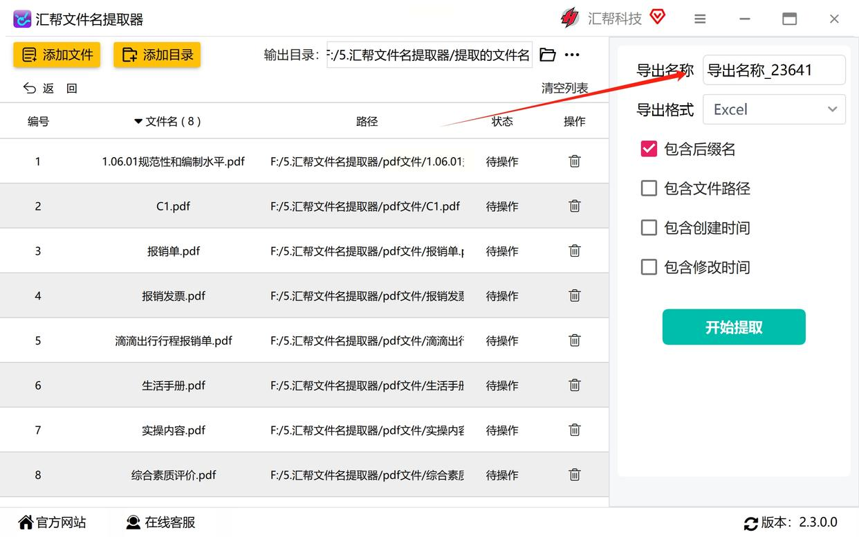 - 导出文件名:默认会生成「文件名提取结果」,不想改的话直接用默认名就行。