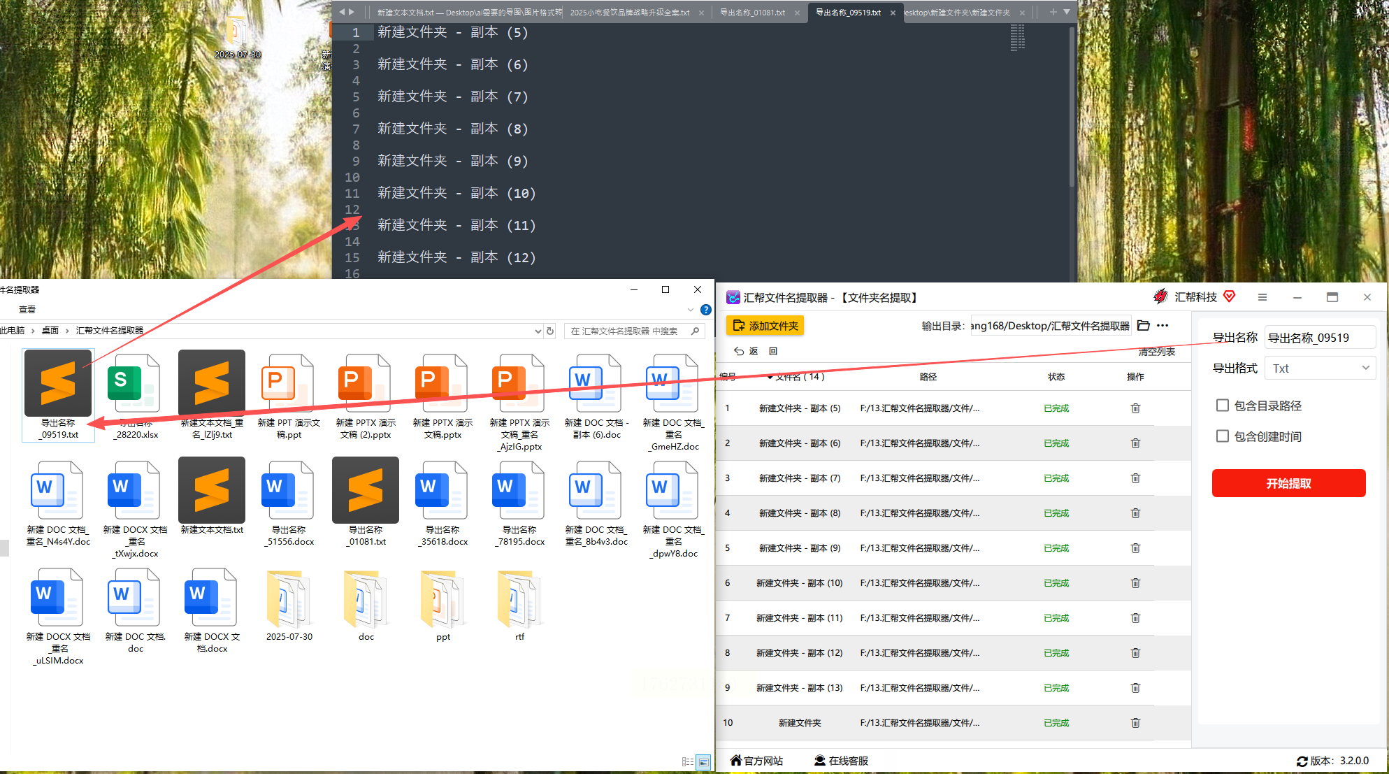 最后,点击“开始提取”按钮,软件会自动生成一个TXT文件,里面按行排列所有文件夹名称。