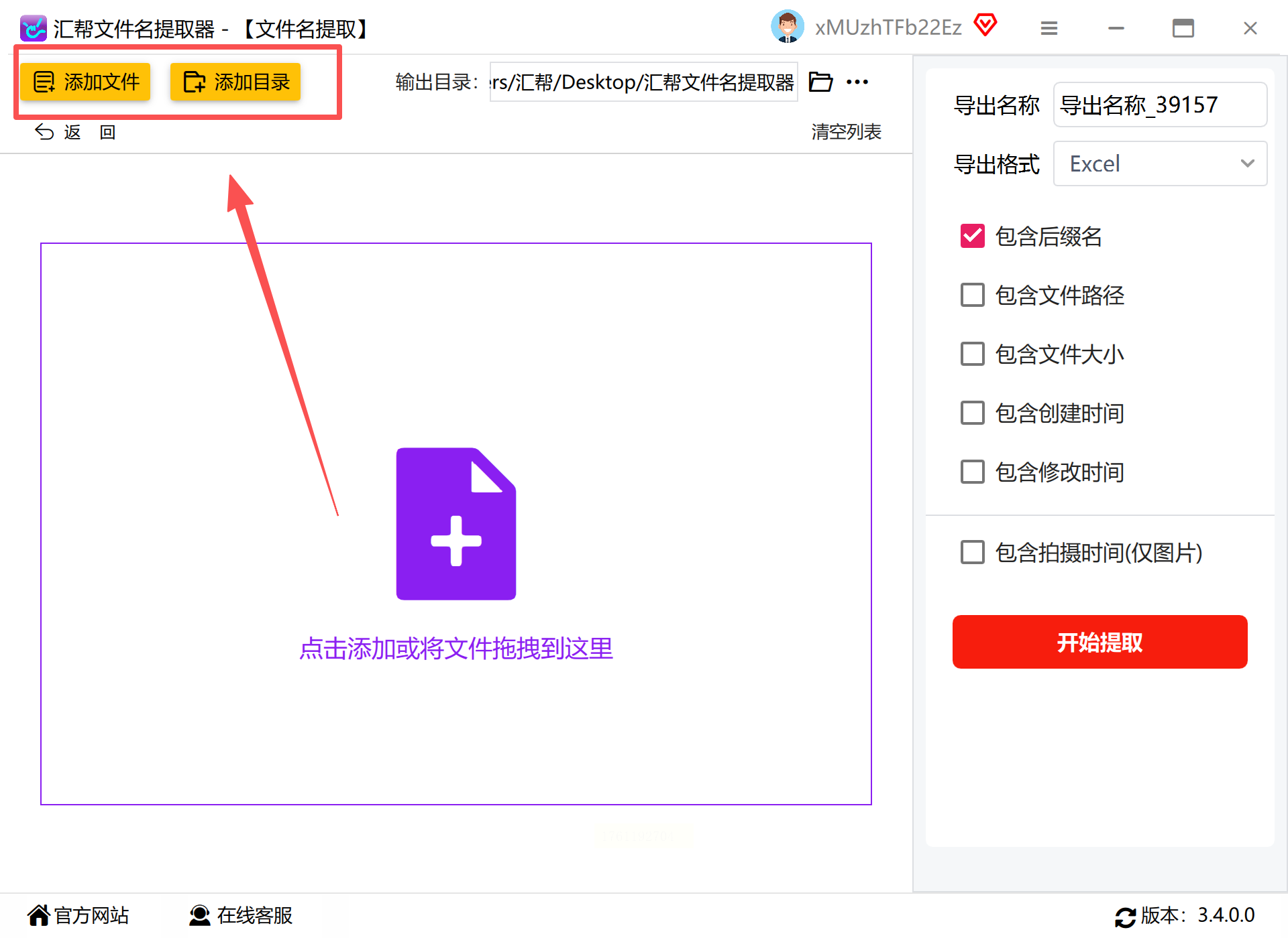 步骤一、启动软件后,您会看到清晰的功能界面。请直接点击“文件名提取”按钮,这个核心功能就是为了帮助您一次性导出大量文件的名称。