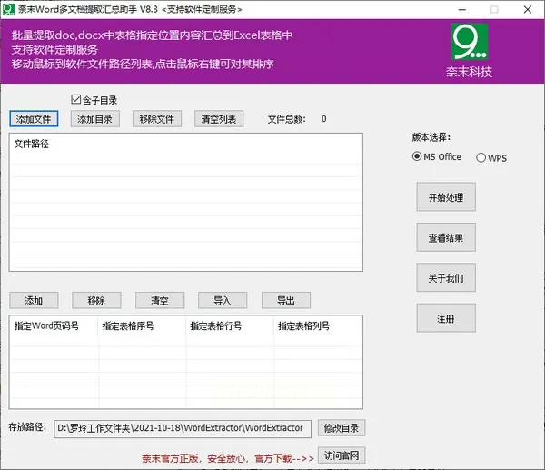 该软件的操作分为几个明确的阶段:首先通过官方网站下载软件包,解压后直接运行可执行文件;接着使用“添加文件”或“添加目录”功能导入待处理的Word文档;然后根据电脑上安装的Office版本进行相应设置;最后点击“开始处理”执行提取操作。处理完成后,可以通过“查看结果”功能检查提取的内容。