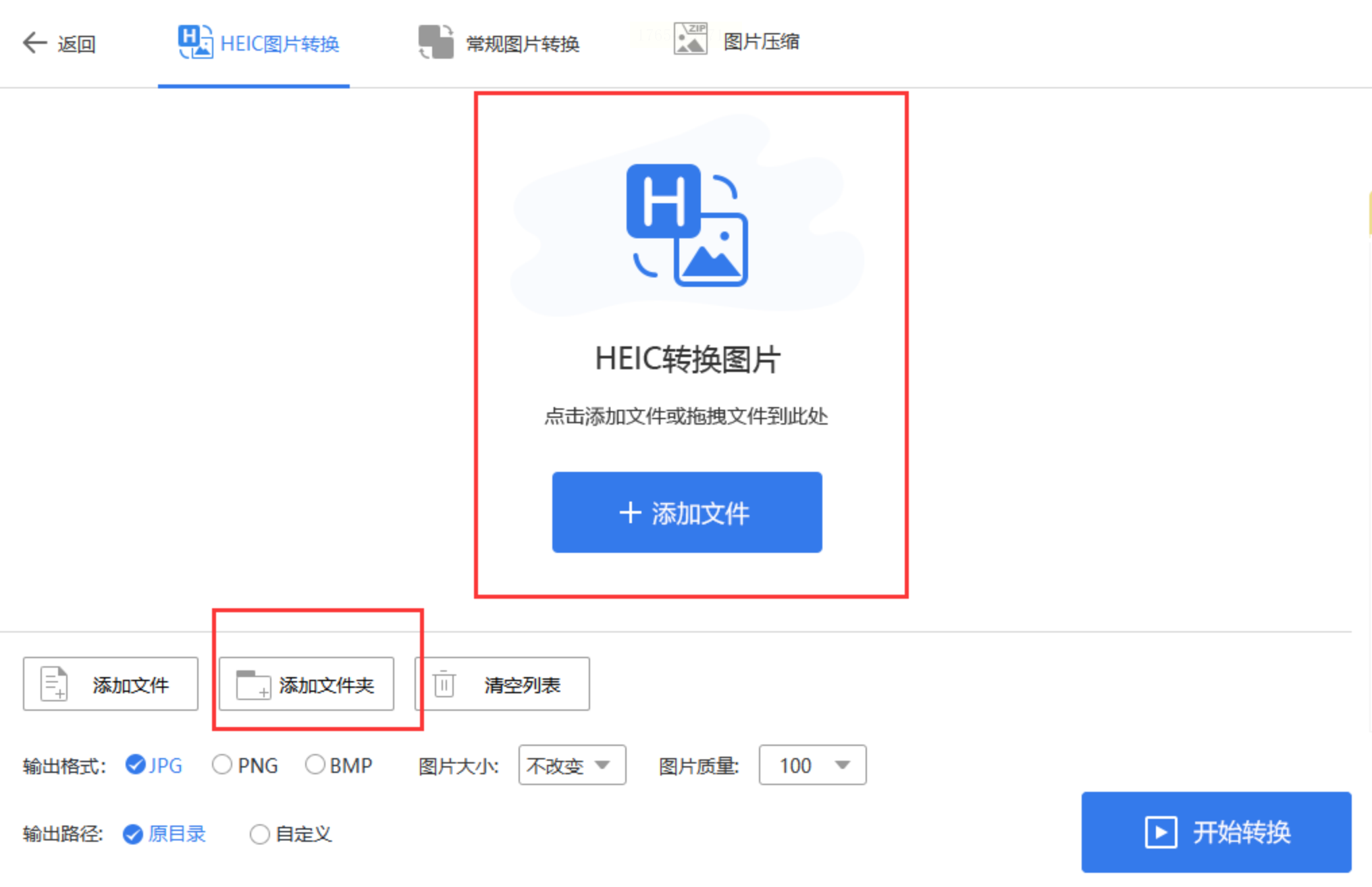 点击“添加文件”按钮,可从电脑、手机或云端导入HEIC文件。支持拖拽操作,直接将文件拖入列表区域更便捷。
