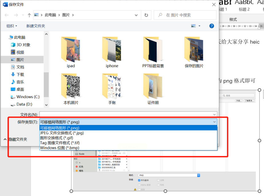 步骤二:将HEIC格式的图片,直接拖拽或者通过“插入”功能,添加到这个Word文档里。