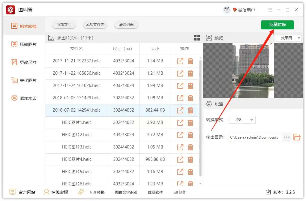 步骤二:在输出设置中,将目标格式调整为JPG。同时,你也可以留意一下是否有调整图片尺寸、压缩率等高级选项,按需使用。