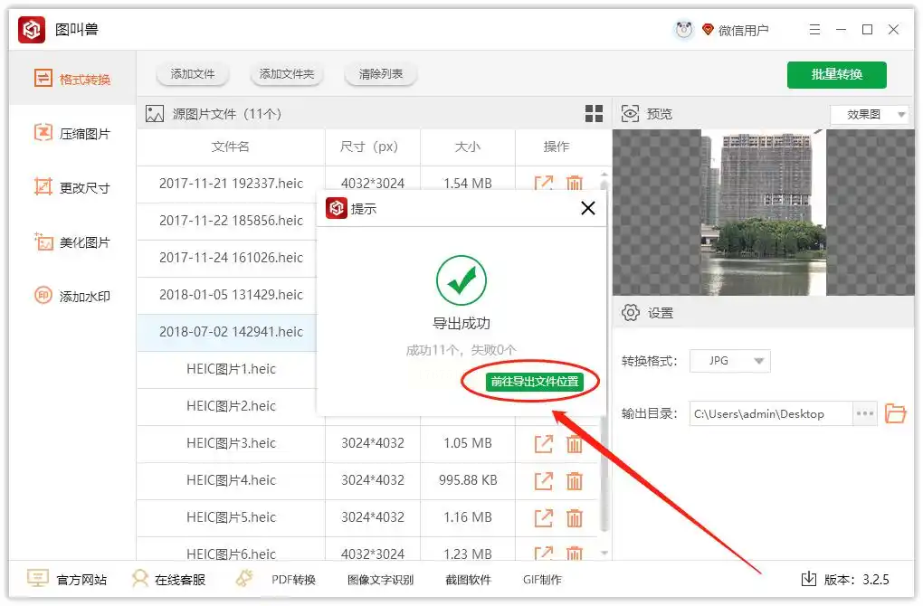 步骤三:点击“开始转换”或“批量转换”按钮。转换完成后,直接点击“前往导出文件夹”的链接,所有转换好的JPG图片就整齐地呈现在你面前了。