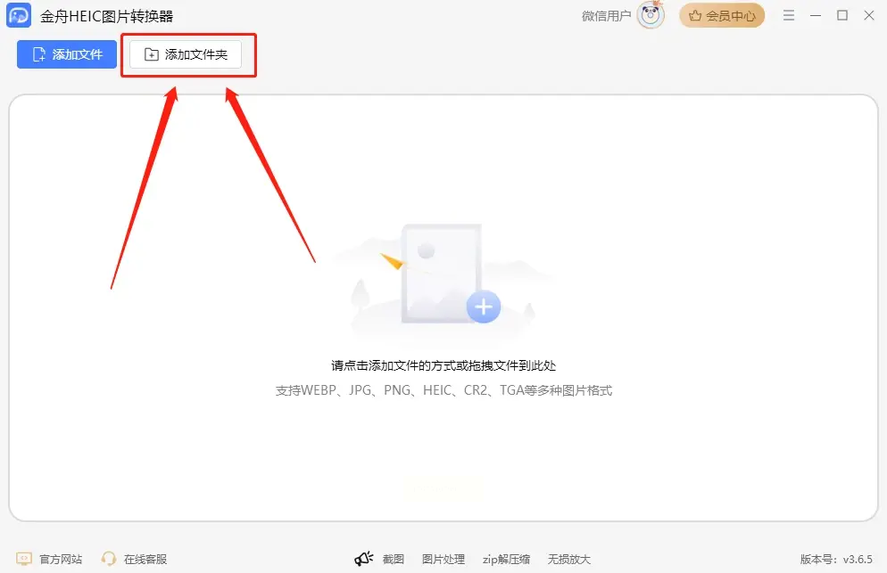 步骤一:打开软件,最便捷的方式是直接点击“添加文件夹”,一次性导入某个目录下的所有HEIC图片,效率极高。