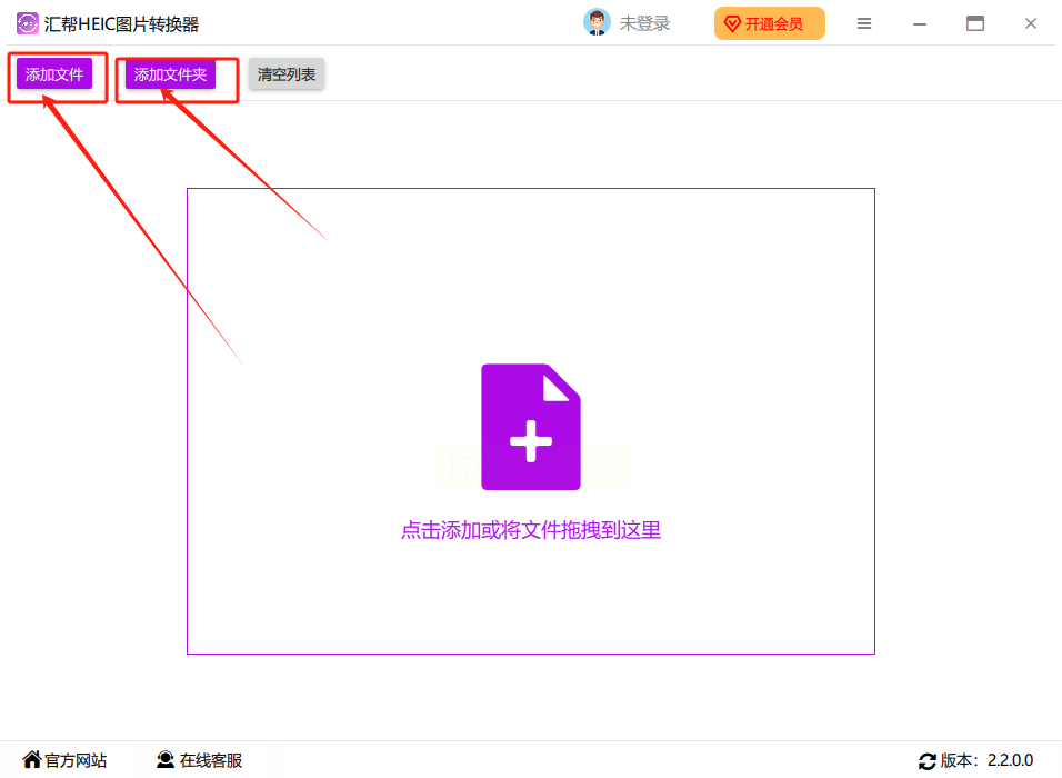 打开软件后,界面超清爽!直接点“添加文件”,找到你手机里存的HEIC图片(可以是几十张,它支持批量转换!);如果是整个文件夹的照片,点“添加文件夹”更省事,再也不用一张张选了!