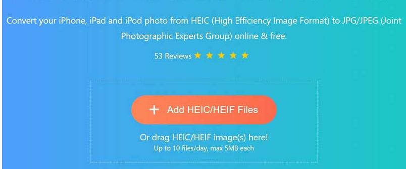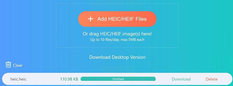 2. 上传文件:点击页面中央“Select JPG or HEIC”按钮,选择电脑中的HEIC文件.