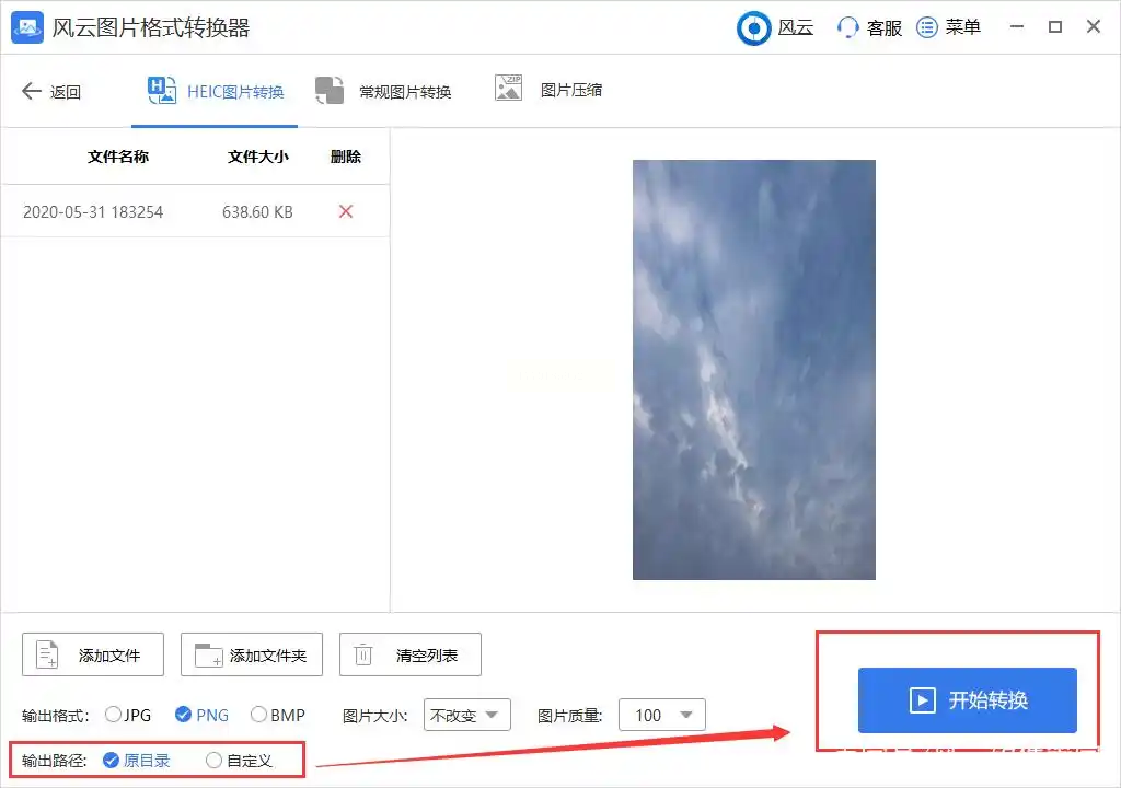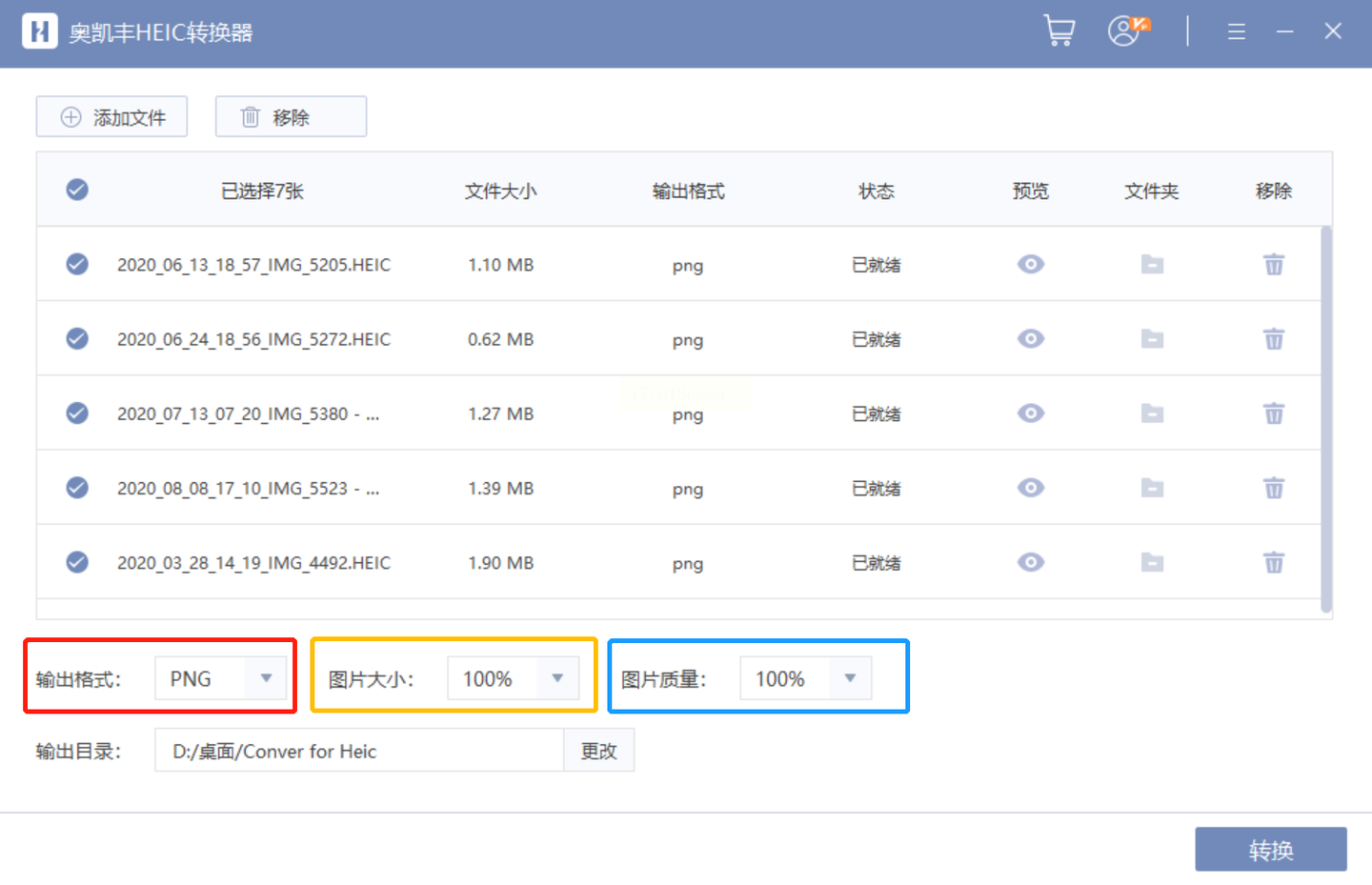 图片导入后,重点就是设置输出选项了。在“输出格式”里,稳稳地选择“PNG”。接下来,你还可以根据需求微调“图片大小”和“图片质量”。如果对画质有较高要求,希望转换后的图片清晰度不打折扣,建议将这两项都设置为100%。当然,如果只是为了快速分享或预览,适当调低可以减小文件体积。