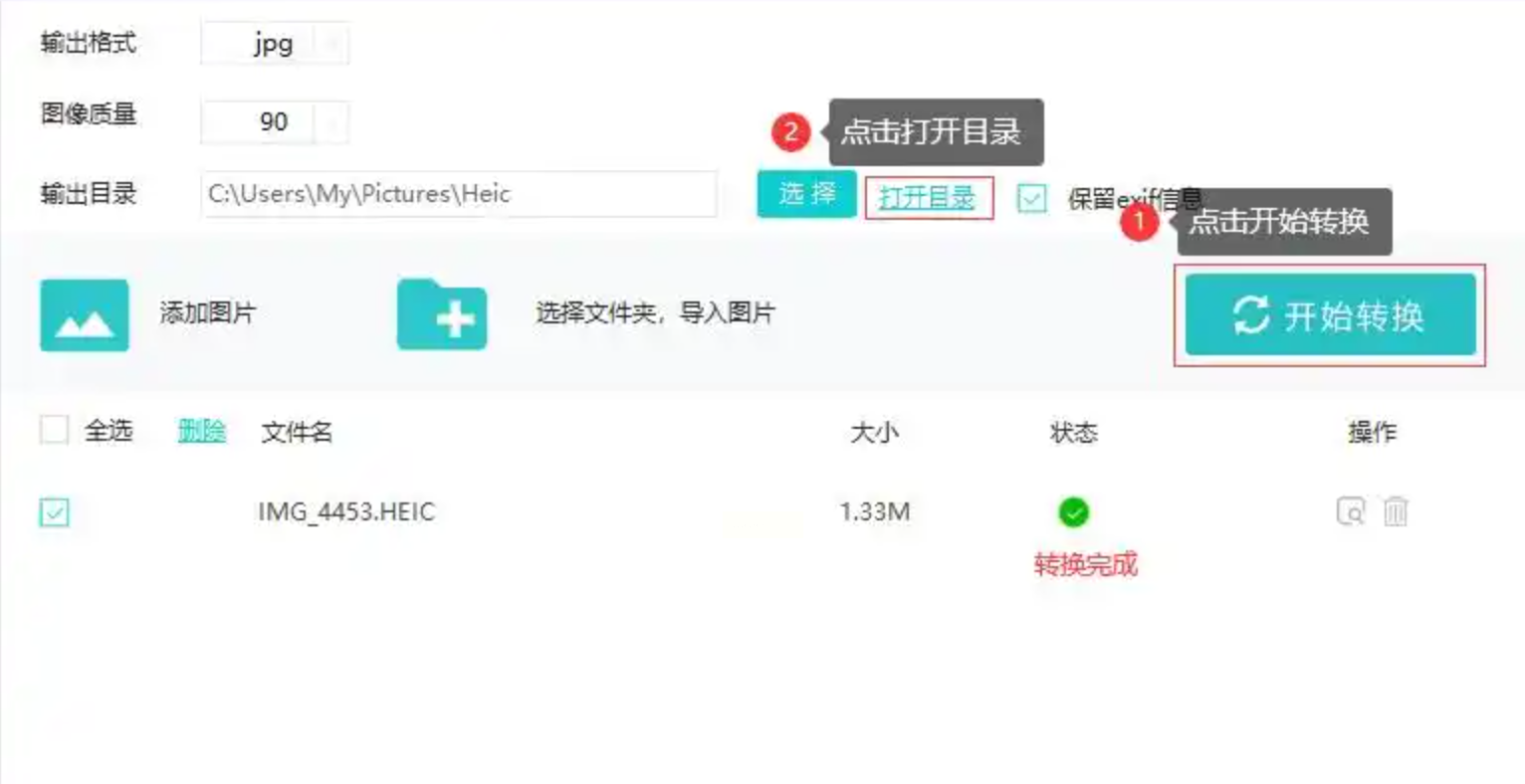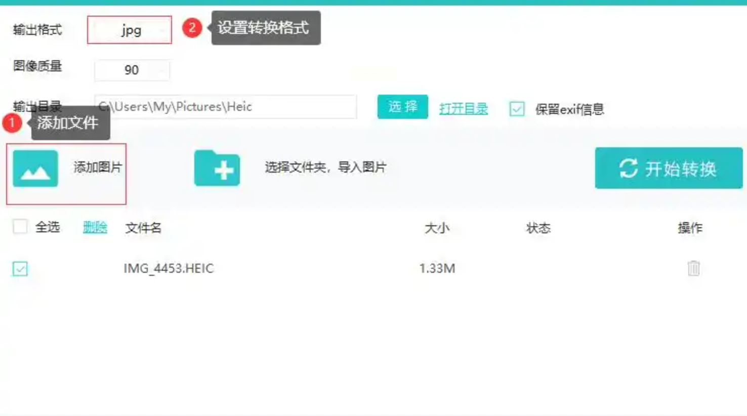 使用起来也很直观。运行工具后,通过“添加图片”功能导入需要处理的HEIC文件。