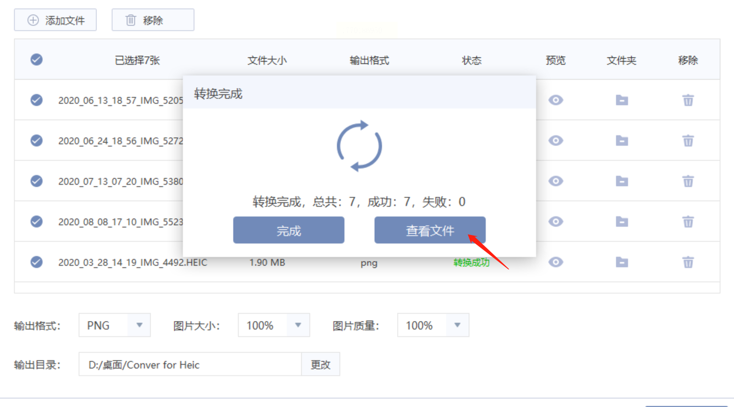 在转换前,确保在格式设置中选对了“PNG”(有些软件默认可能是JPG,需留意)。参数设置完毕后,点击“开始转换”。转换进度达到100%后,利用“打开输出目录”功能,就能直接去到保存位置查看生成PNG图片的质量和效果。