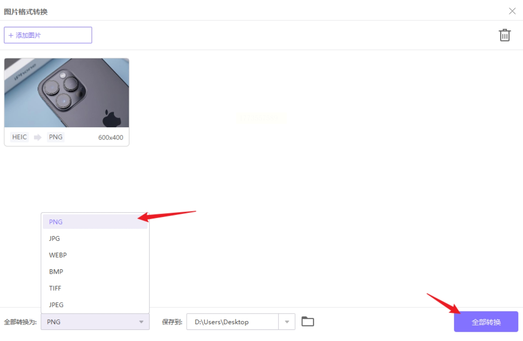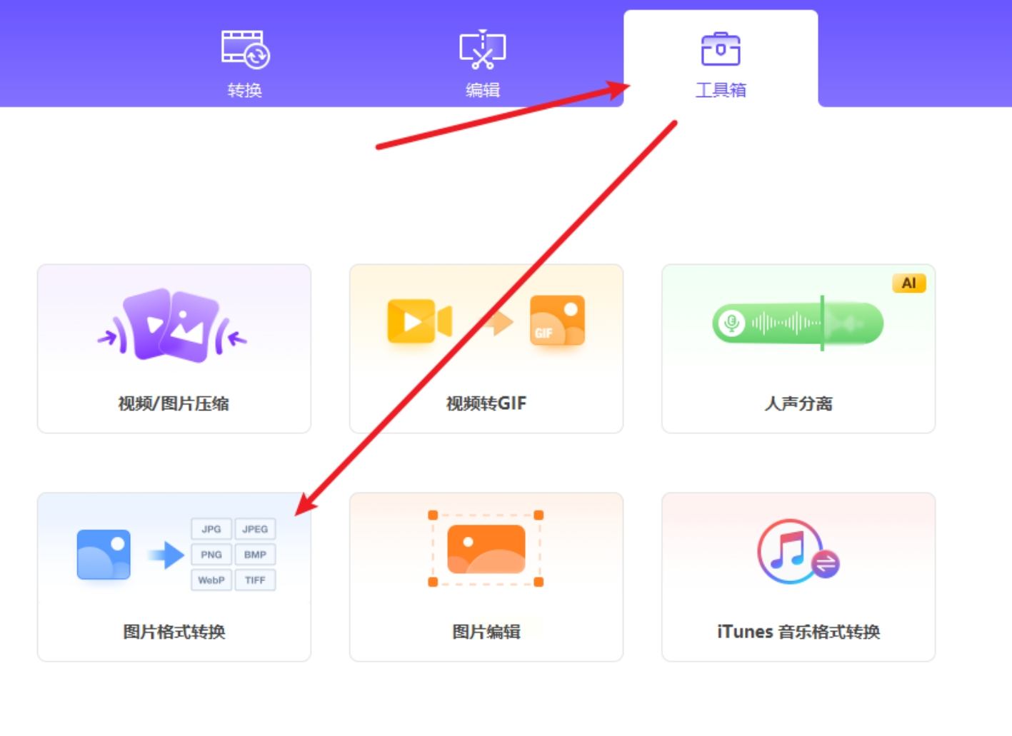 2. 进入图片转换模块:在软件首页选择"工具箱→图片格式转换",这里支持HEIC、RAW、PNG等多种格式互转。