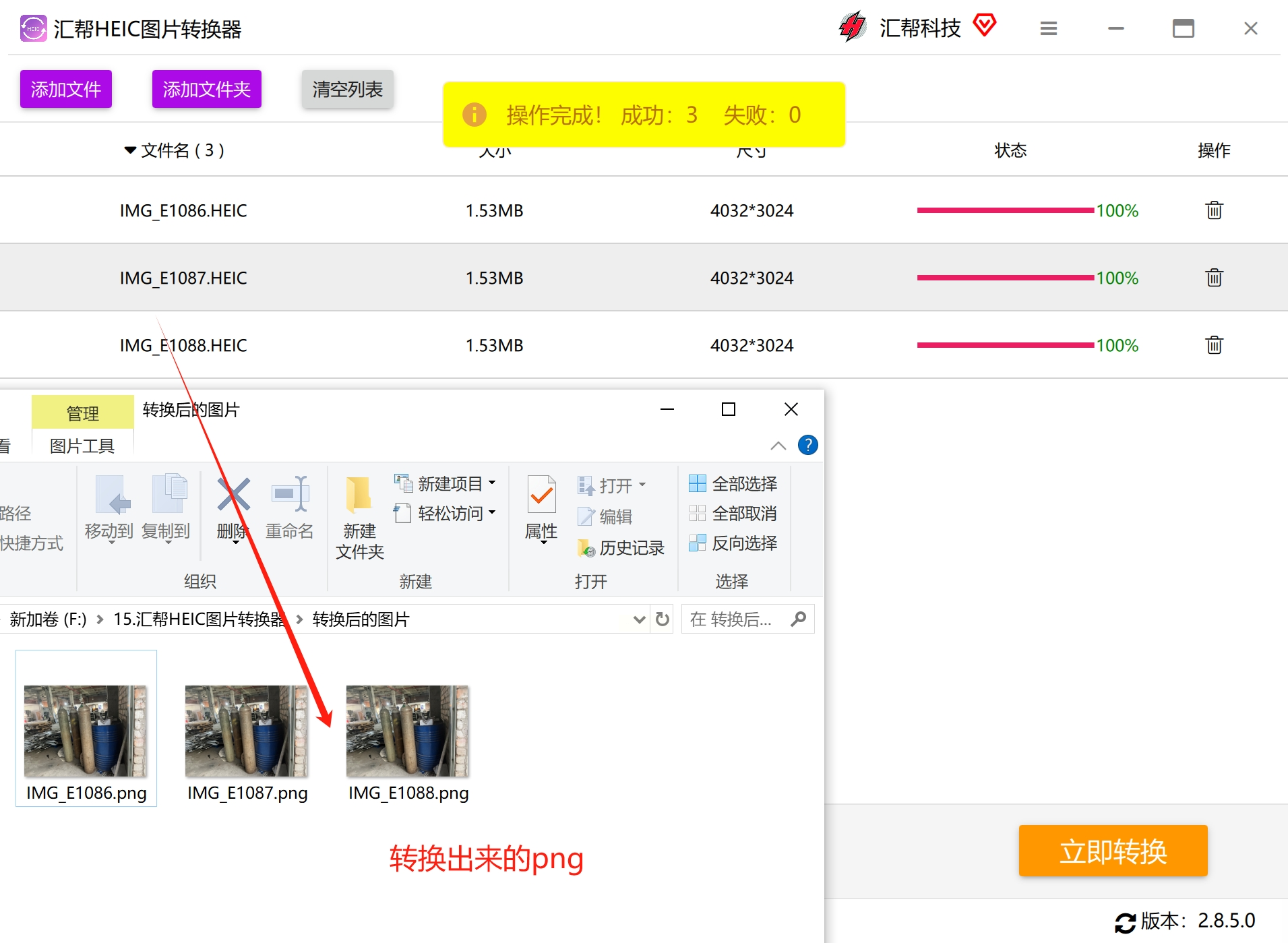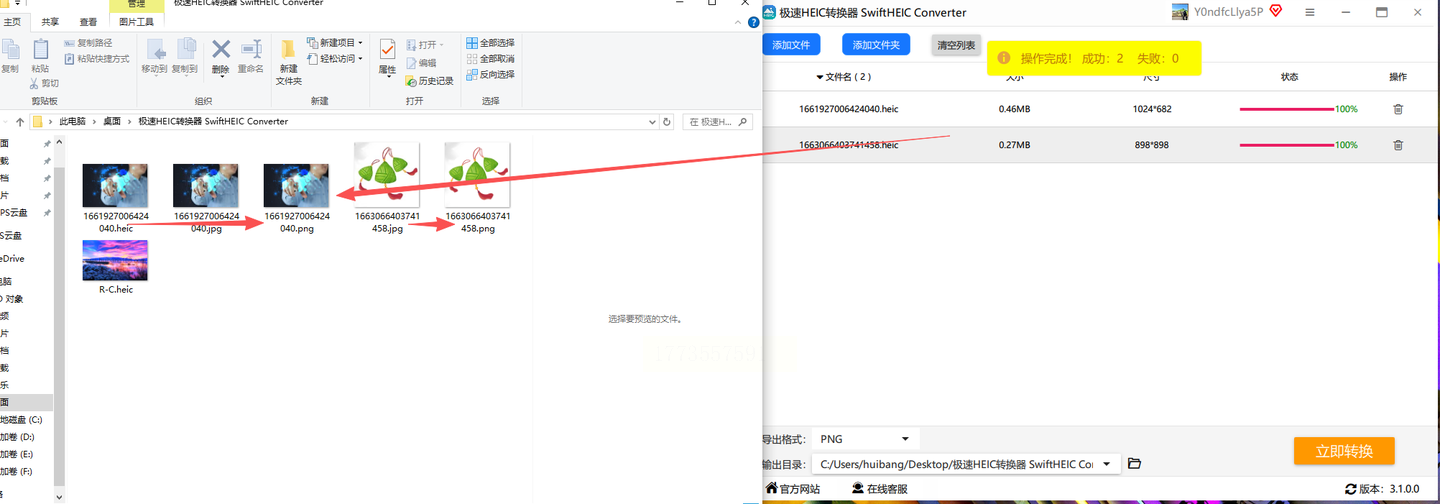 5. 查看结果:点击"打开输出文件夹",就能看到生成的PNG文件,后缀名是.png,大小比原HEIC略大(但比JPG小,因为PNG压缩率也不错)。