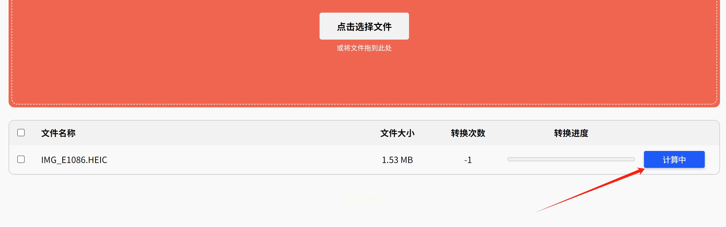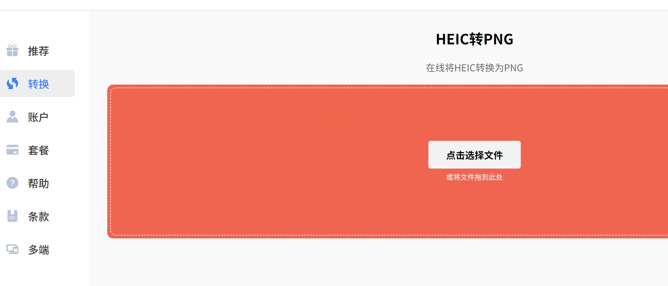 2. 上传文件:点击"选择文件",拖入HEIC图片(单张最大20MB,适合专业相机照片)。