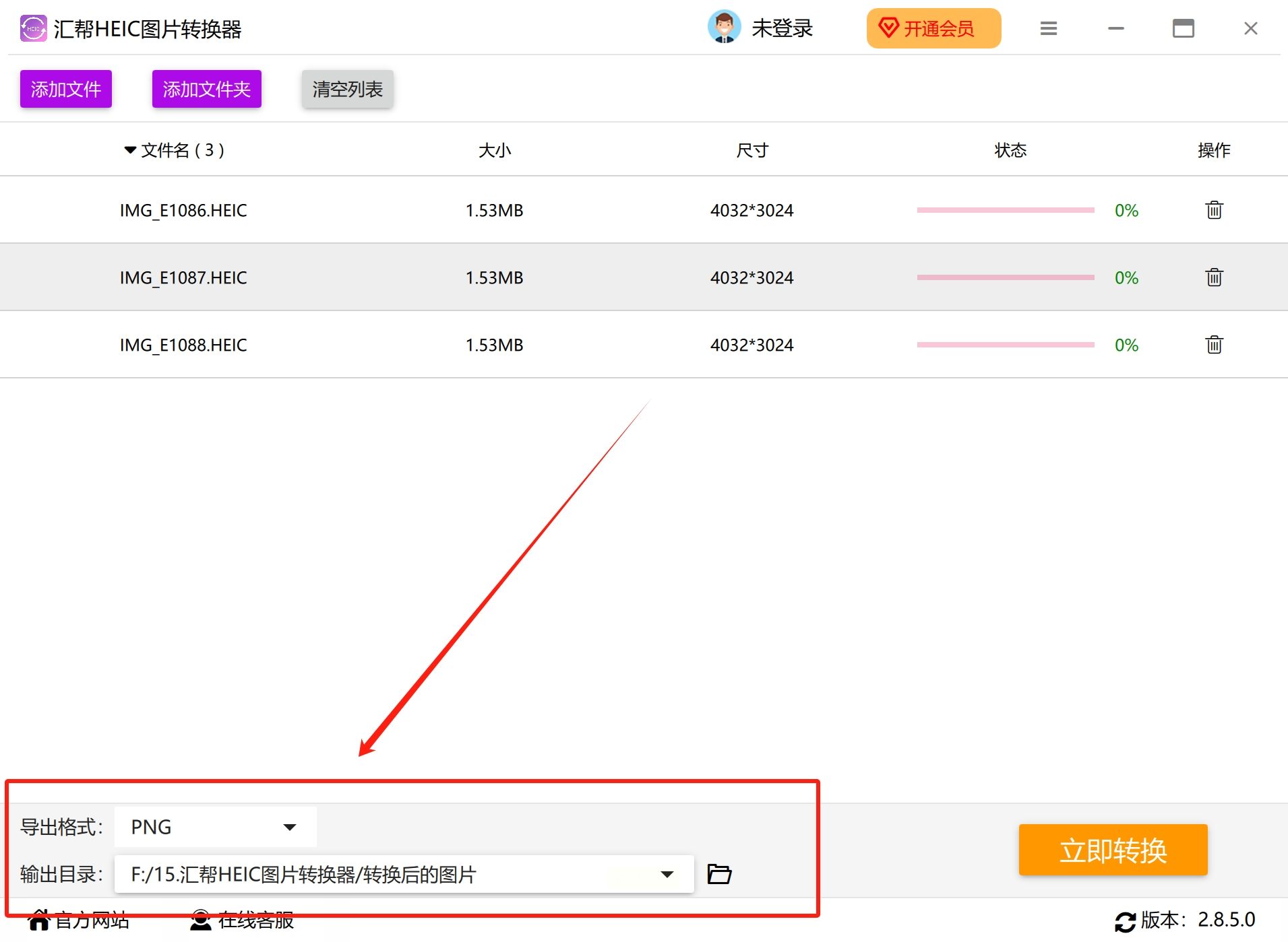 - 质量调整:HEIC转PNG时,PNG支持无损模式,直接选"原图质量"
