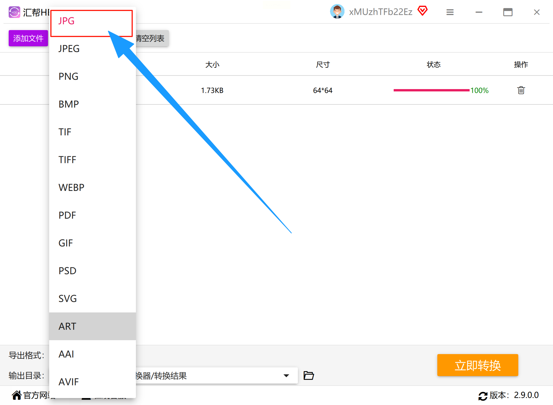 2. 设置转换参数:在界面下方找到「导出格式」,下拉菜单里选「JPG」;如果想保留高清,就选「高质量」(新手默认就行);