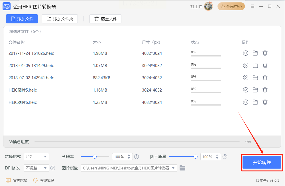 4. 开始转换:点击「开始转换」按钮,等进度条走完(速度和图片数量有关,多等一会儿也没关系);