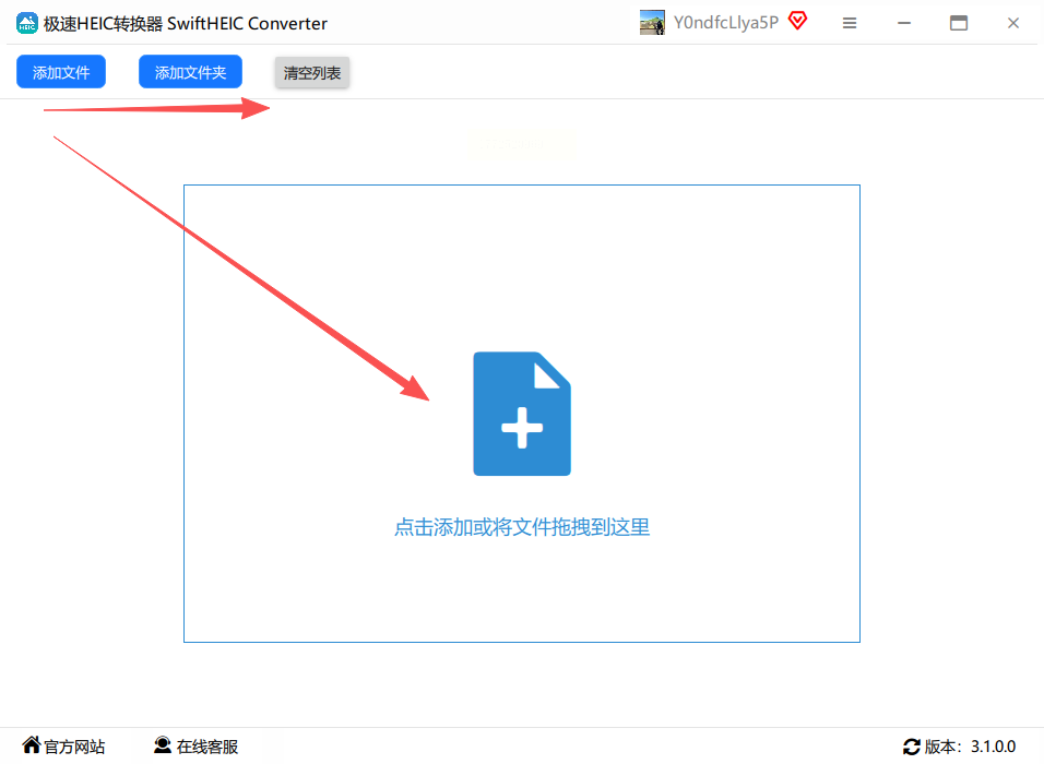 2. 点击“添加文件”,选择需要转换的HEIC图片,支持批量导入。