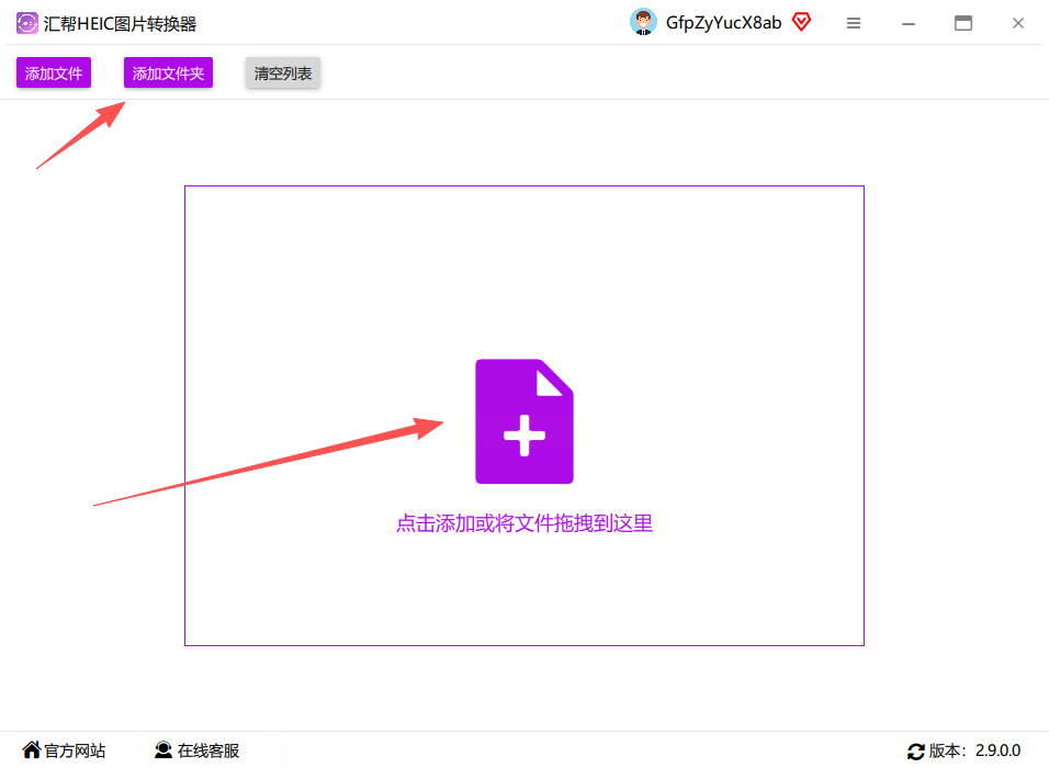 1. 打开软件后,点击“添加文件”批量导入HEIC图片,支持一次性导入数百张。