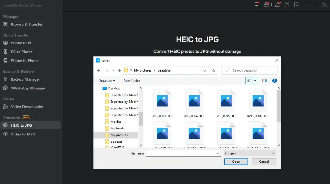 1. 电脑端安装MobiMover后,左侧导航栏选择「HEIC to JPG」功能模块。