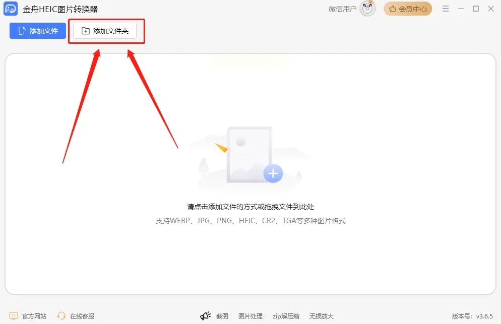 1. 启动软件后,点击「添加文件夹」批量导入整文件夹HEIC图片。