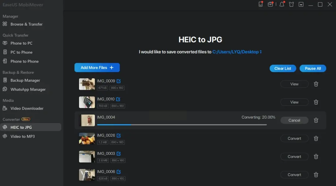 4. 完成后点击「View」直接打开转换后的文件夹,支持一键删除原HEIC文件(需手动勾选)。